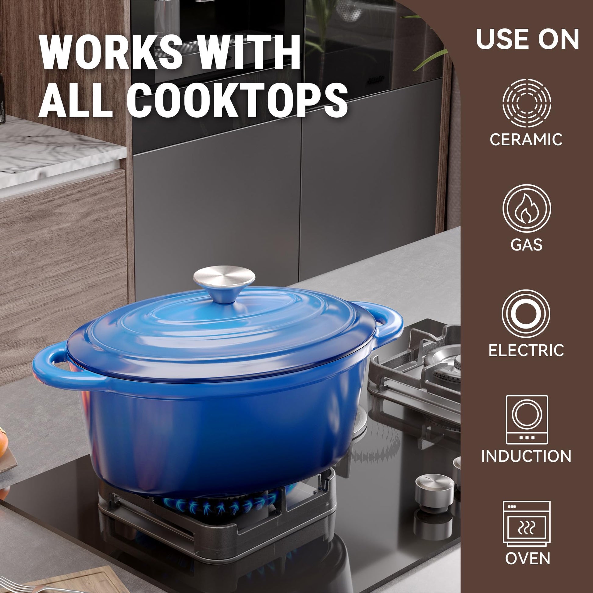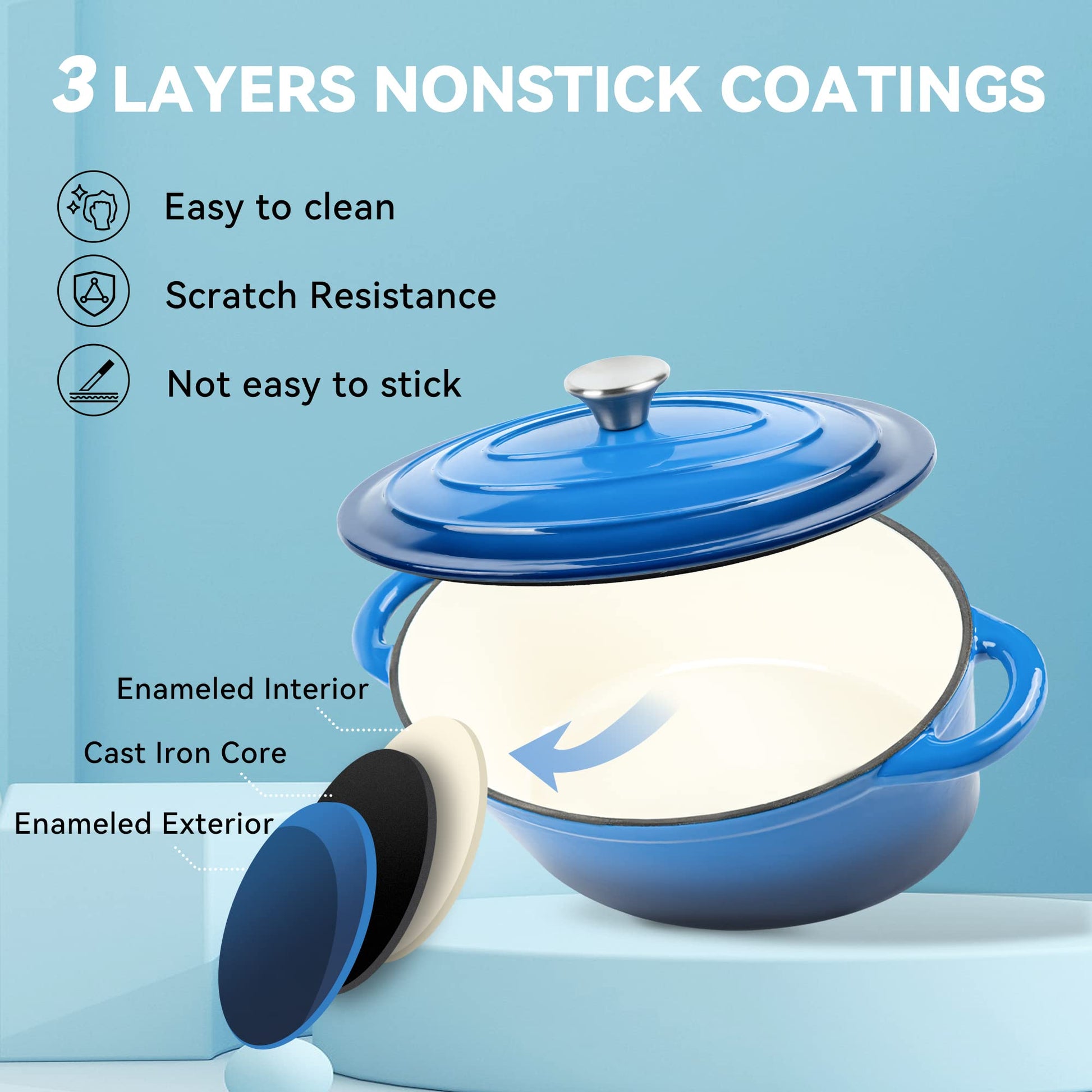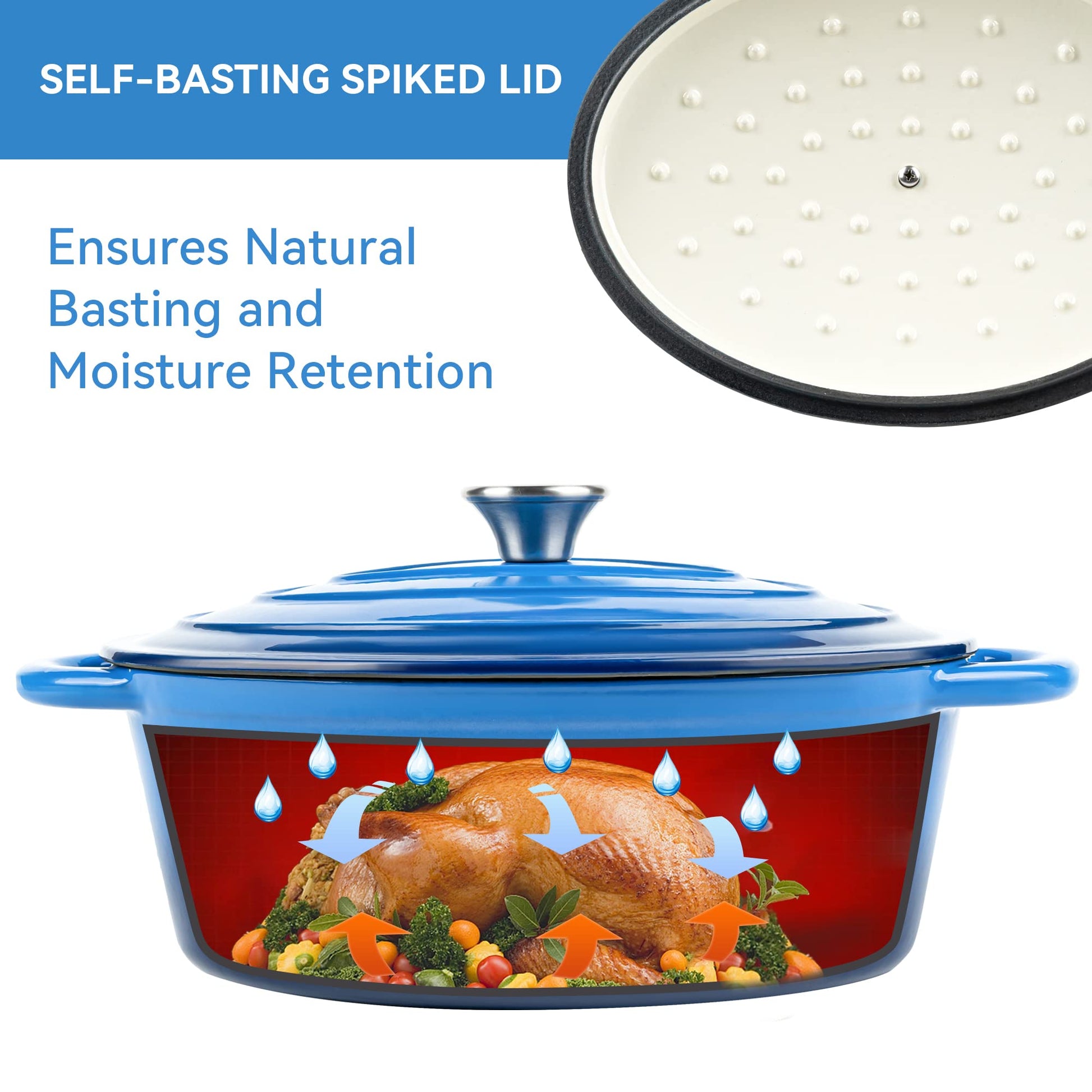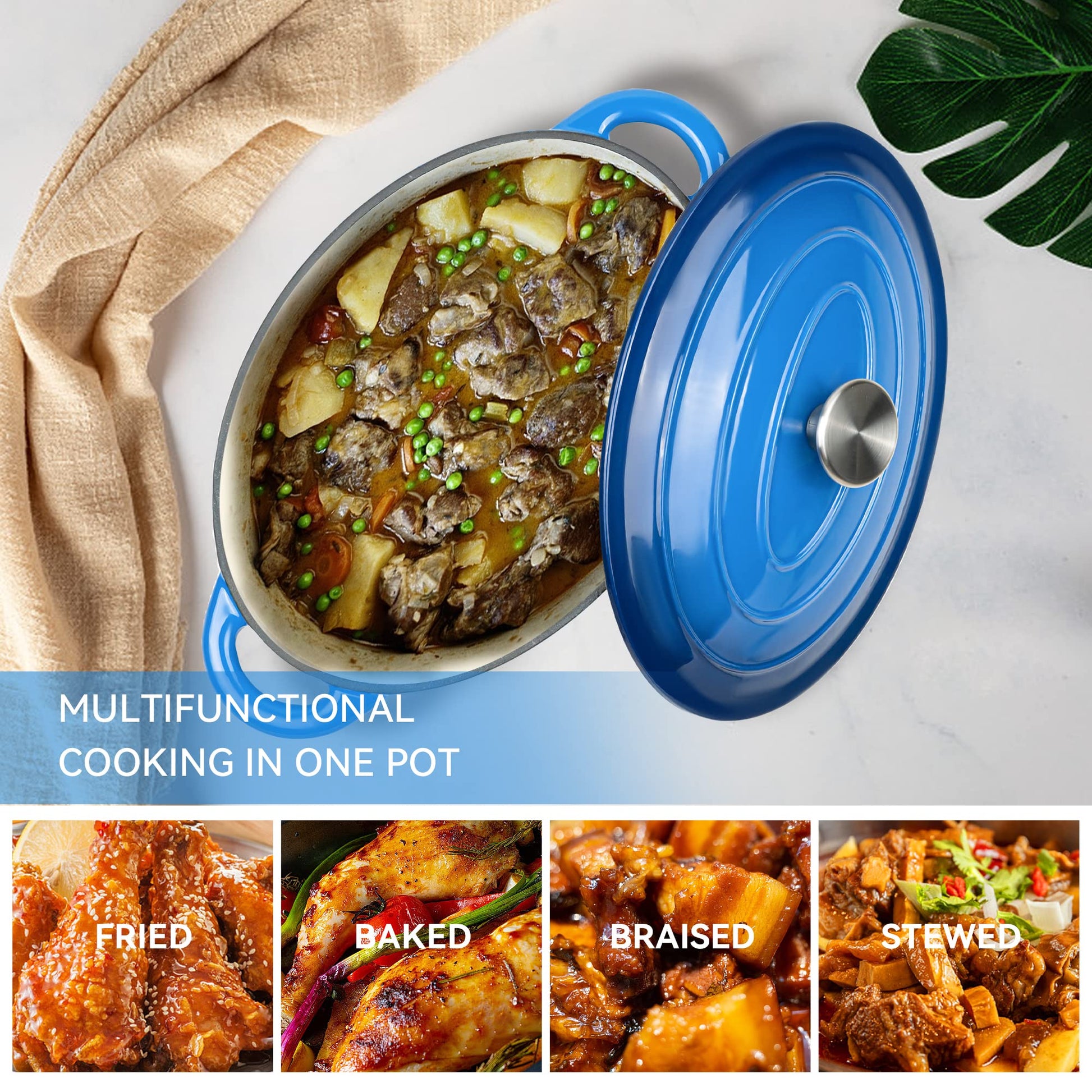 Kerilyn 4.5 Quart Enameled Oval Dutch Oven Pot with Lid and Dual Handles, Cast Iron Dutch Oven for Cooking, Bread Baking, Non-stick Enamel Coated Cookware (Blue)