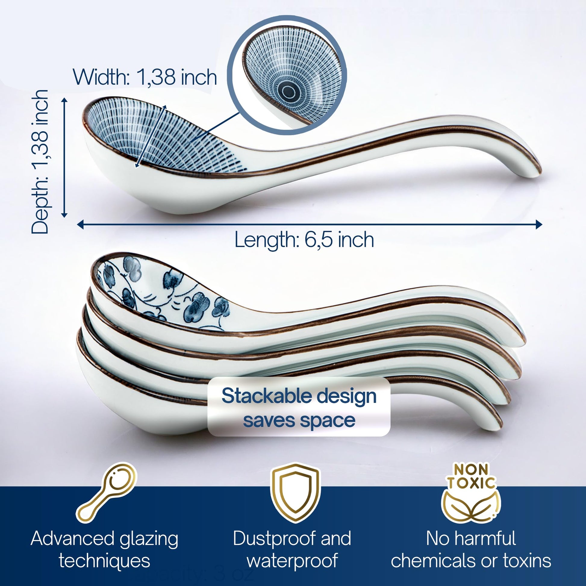 - Great Gift for Asian Cuisine Enthusiasts – These ceramic asian soup spoons are an excellent gift for anyone who enjoys ramen spoons, pho spoons ceramic, and japanese soup spoons ceramic. Ideal for pho spoons set of 4,soup spoons set of 4 these spoons make a great gift for friends, family, and loved ones who appreciate fine asian spoons. Porcelain spoon and ceramic spoons make a thoughtful and practical gift for Asian culture lovers.