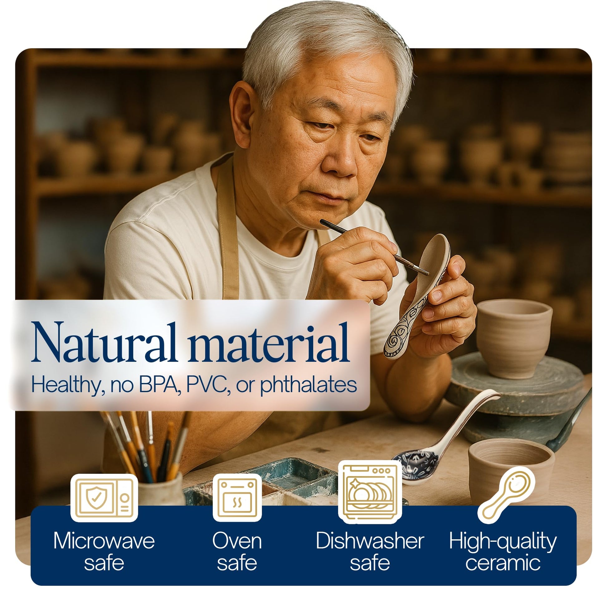 - High-Quality Ceramic Construction - Made from durable ceramic soup spoons, these asian soup spoons ceramic are sturdy and built to last. Perfect for chinese spoons, ramen soup spoon, pho spoon, and soup dumpling spoon. These spoons are ideal for any asian soup spoons set, ensuring high-quality, long-lasting use. A great choice for asian spoons soup and japanese ramen spoon lovers.