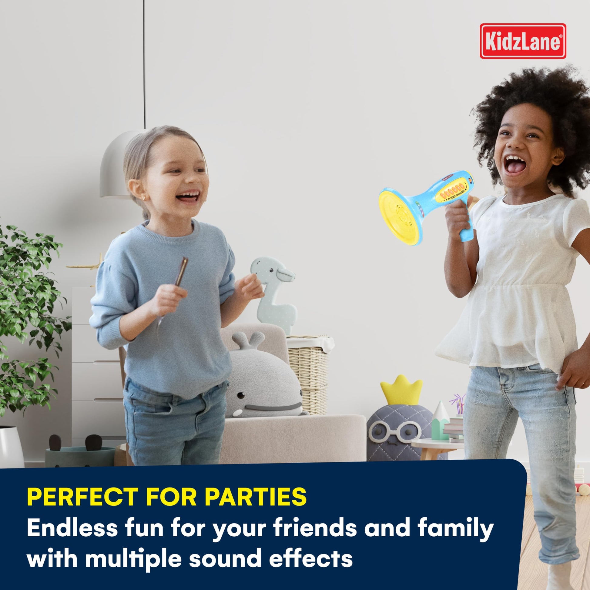 - MEGA VOICE AMPLIFIER: This kids voice changer doubles as a megaphone! Adjustable volume lets you set the noise at a level you can handle. Suitable for outdoor games.
