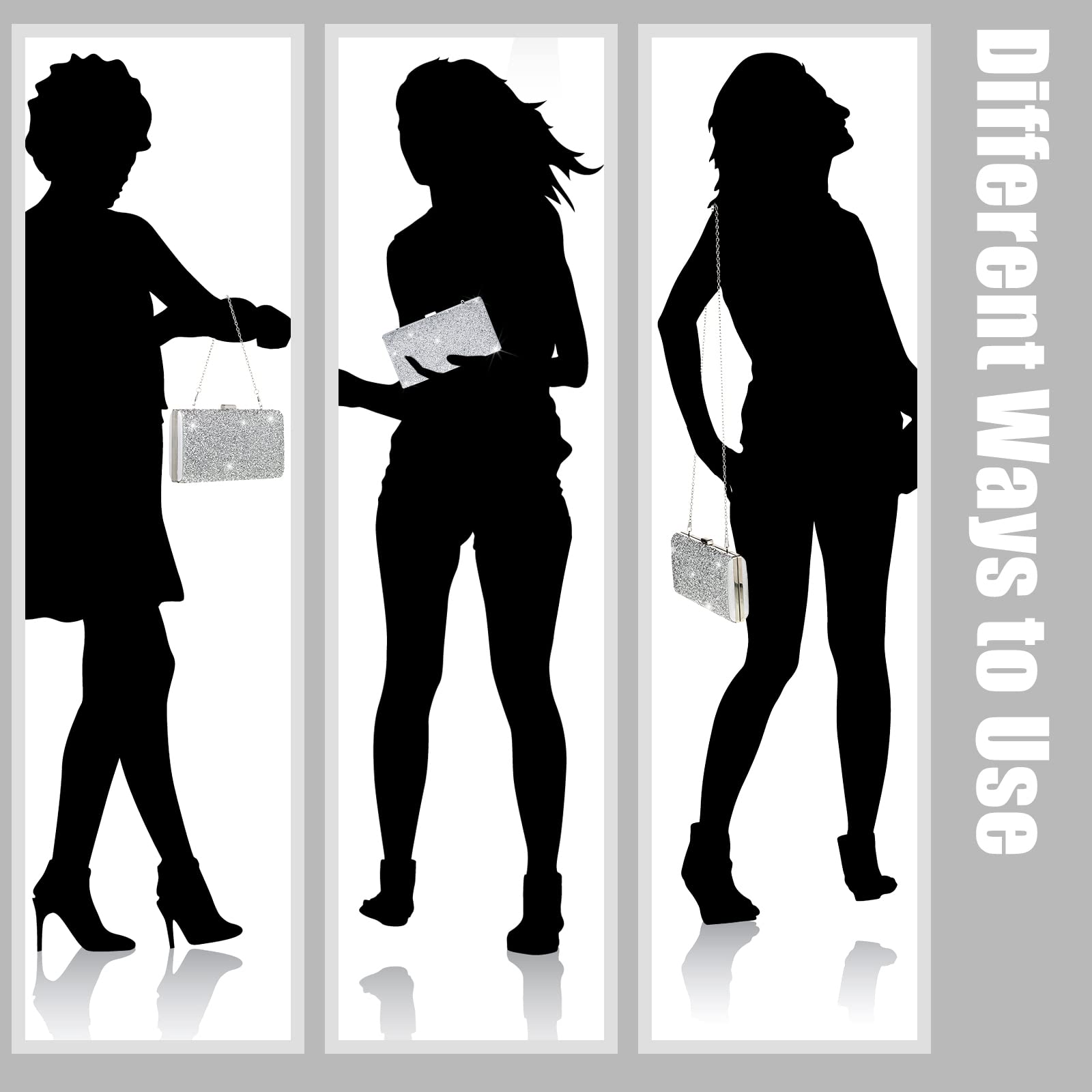 - Rhinestones Clutch Design: the accessories for women handbag is made of polyester lining with glitter rhinestones on one side and PU leather on the other side, and the soft smooth inner material will not scratch the inner items; Push the button in the middle of the top to open the bag, which is convenient and easy to use
