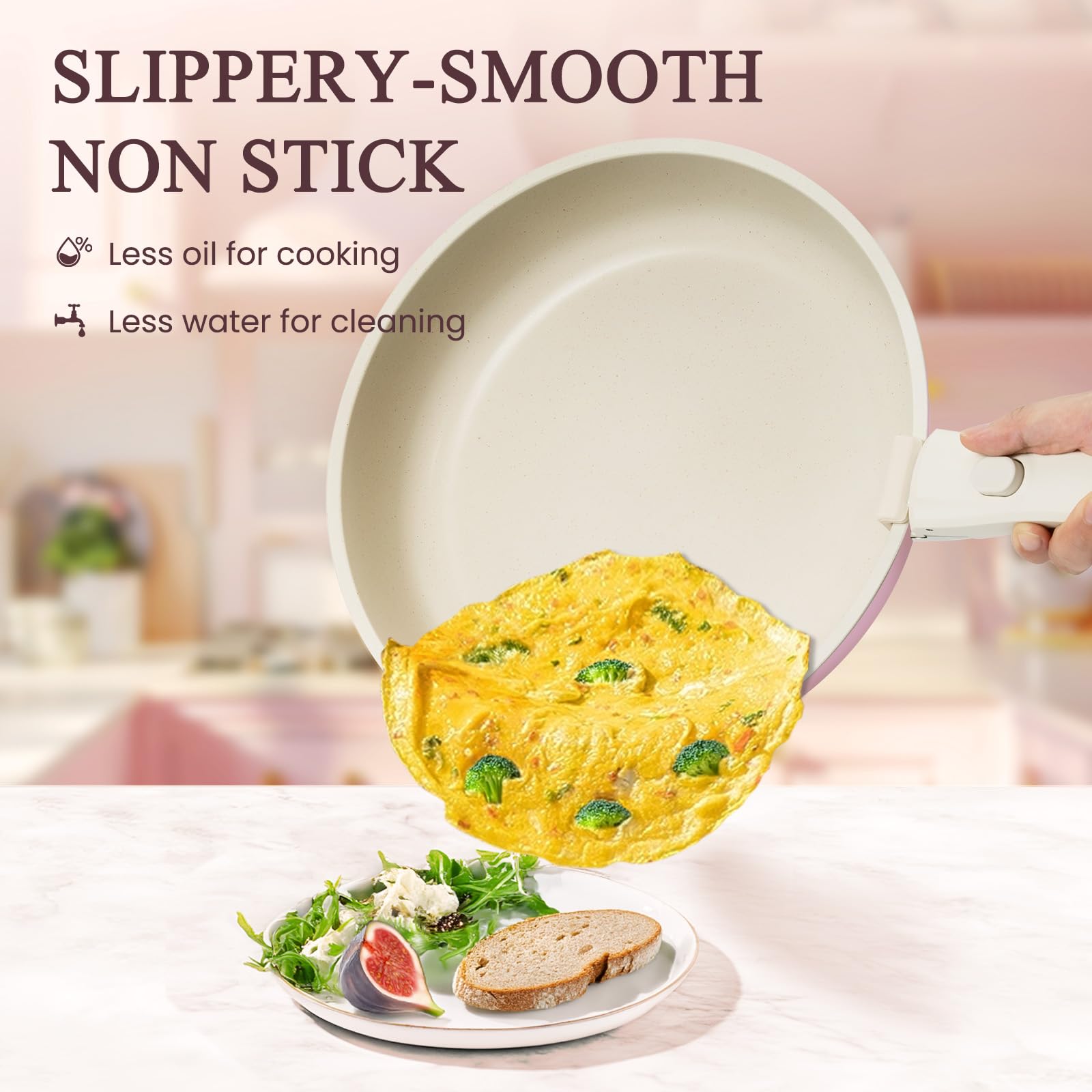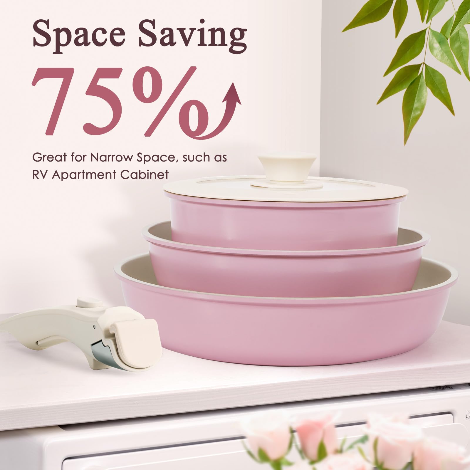 - γπΏπππΌπΎππΌπ½ππ ππΌππΏππ πππ ππΌππ πππππΌππγThese ceramic pots and pans set with detachable handles allow for compact storage, sapce saving 75% for kitchen cabinet or organized in drawer, especially great for RV or small apartment. the reinforced removable handles can support up to 24 pounds, ensuring a secure grip and enhancing your cooking experience without the worry of breaking.