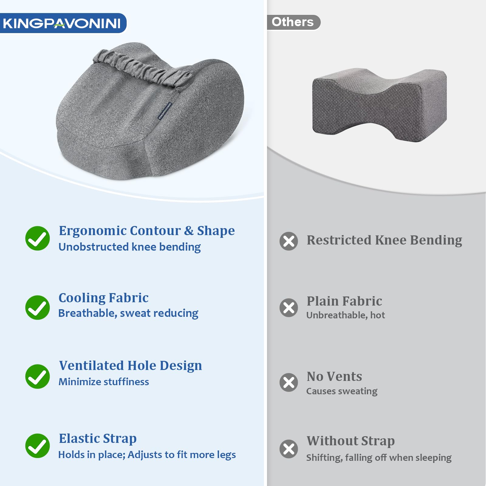 - Cooling Pillowcase & Ventilated Hole Design: KingPavonini hip pillow comes with a cooling silky cover, which is skin-friendly and soft touching. High quality fabric is more elastic and wear resistant. The ventilation hole in the middle of the memory foam core is designed to avoid the stuffiness caused by prolonged use of the leg pillow and improve the comfort of your legs.