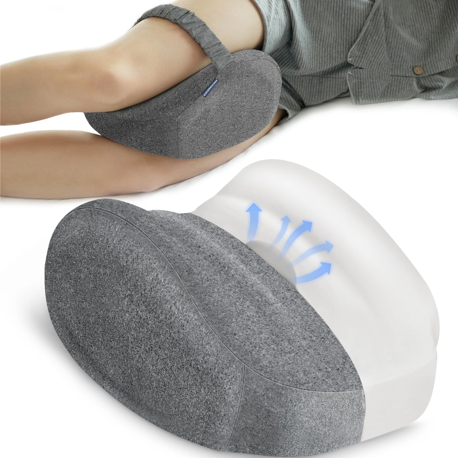 KingPavonini Cooling Knee Pillow for Side Sleepers Hip Pain, Memory Foam Leg Pillow for Side Sleeping with Strap, Ergonomic Hip Pillow for Spine Aligning, Back/Knee Pain, Sciatica, Pregnancy