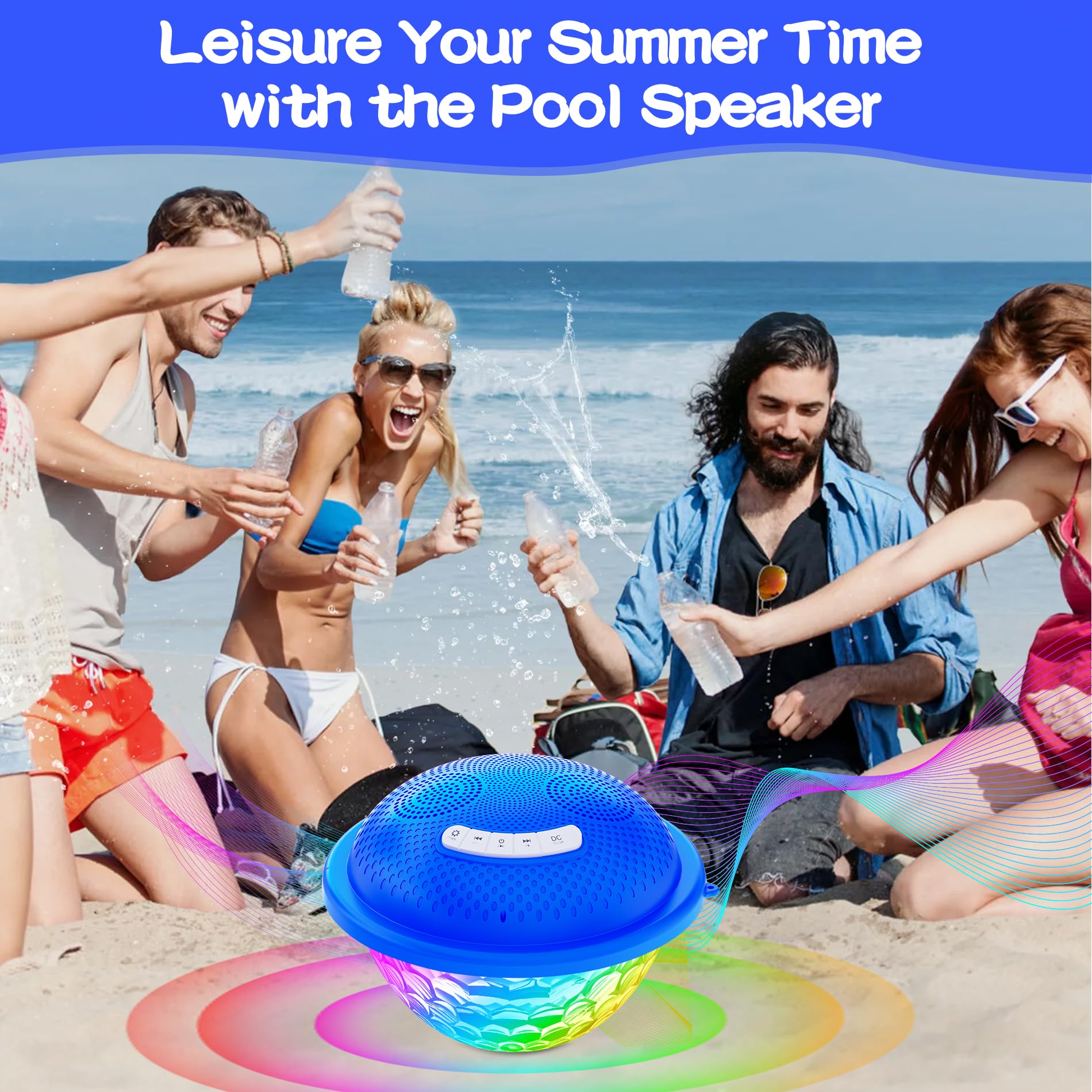 - PULSING COLORFUL LIGHT SHOW:Get the party started with crisp and clear sound,rock the party with multi-color flashing lights.The pool speaker with lights not only a pool speaker but a pool light to greatly increase the fun and add some ambiance to pool.You can customize the light effects to suit your preference by simply pressing the light button.bluetooth hot tub speaker- a totally reimagined rainbow light show that pulses, phases,and shines to the beat of music,adds a touch of beauty to your backyard oasis.