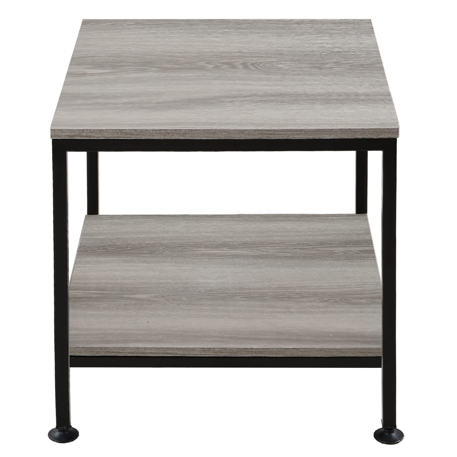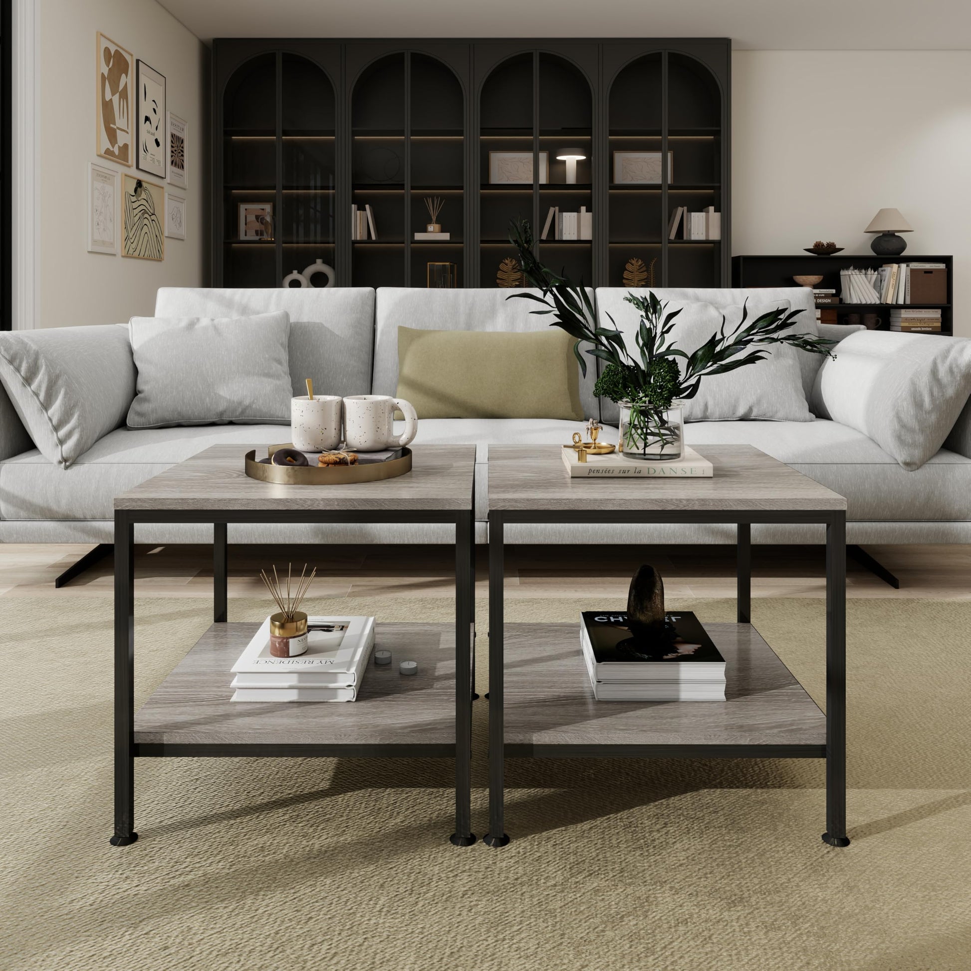 KirKical 20 Inch 2 Tiers Square End Table with Metal Frame, Rustic Grey Fridge Stand Side Table Sturdy Easy Assembly Simple Style for Living Room Bedroom, Slate Grey