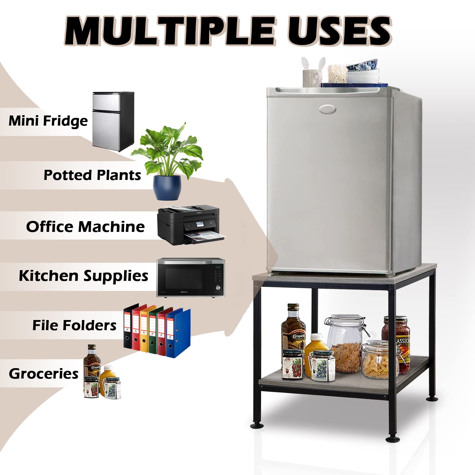 - Quantity:1 Set; Dimensions: 20'L x 20'W x 20'H. The height between the upper and lower shelf is 12''. Maximum Weight Capacity: 110 lb. Can be used as end tables, fridge stand, side tables, or nightstands.