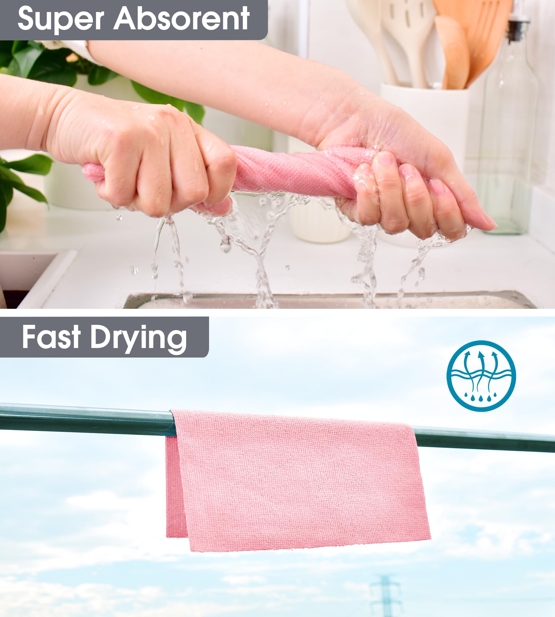 - [Quick-Drying & Streak-Free] Engineered for fast absorption and drying, these towels leave no streaks or lint behind. Whether you’re drying dishes or wiping down surfaces, you’ll enjoy a clean, streak-free result every time.
