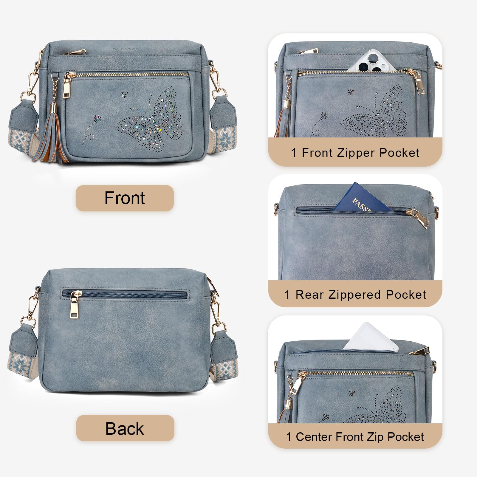 KITEVIUN Crossbody Bags for Women Trendy Leather Crossbody Purse Shoulder Handbags Butterfly Design
