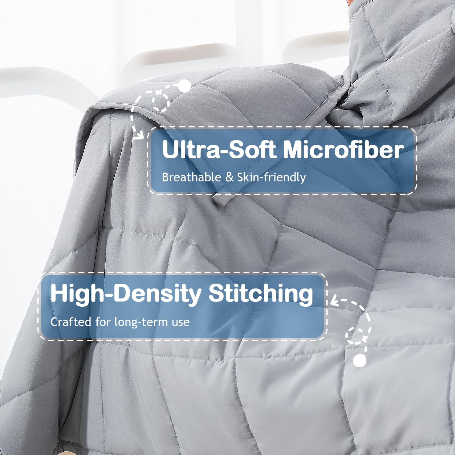 - Soft and Comfortable: Made with ultra-soft microfiber on both sides, the breathable weighted blanket keeps you warm in winter and cool in summer. The tiny glass beads provide just the right weight without the bulk or overheating