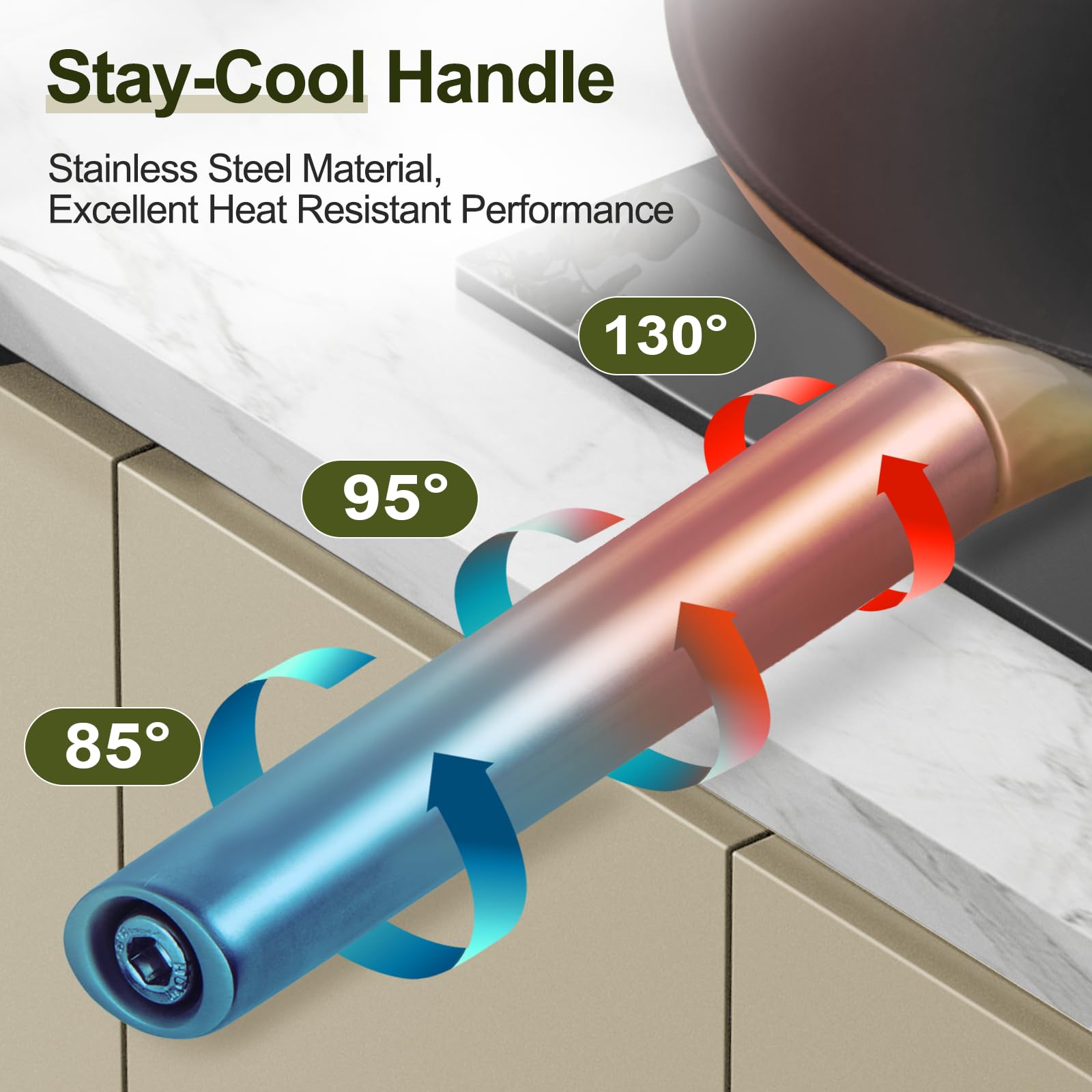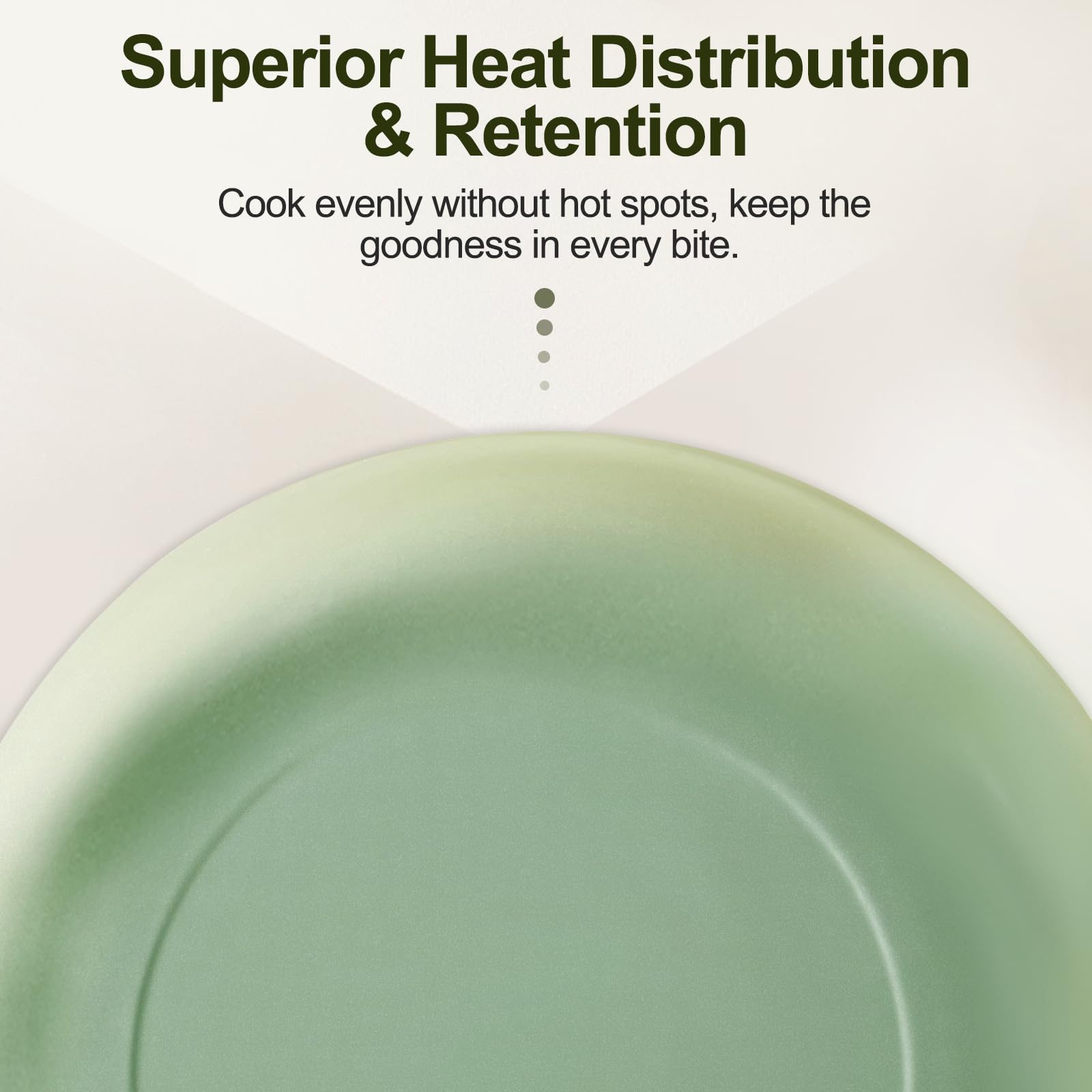 - HEAT-RESISTANT HANDLE: The ergonomic stainless steel handle stays cool during stovetop cooking, protecting your hands from burns. Unlike wooden handles, our integrated design is oven-safe and dishwasher-friendly, expanding your cooking possibilities and offering unmatched versatility. The elegant sage green gradient bottom adds a stylish feeling to your kitchen while delivering professional-grade cooking performance for any recipe.