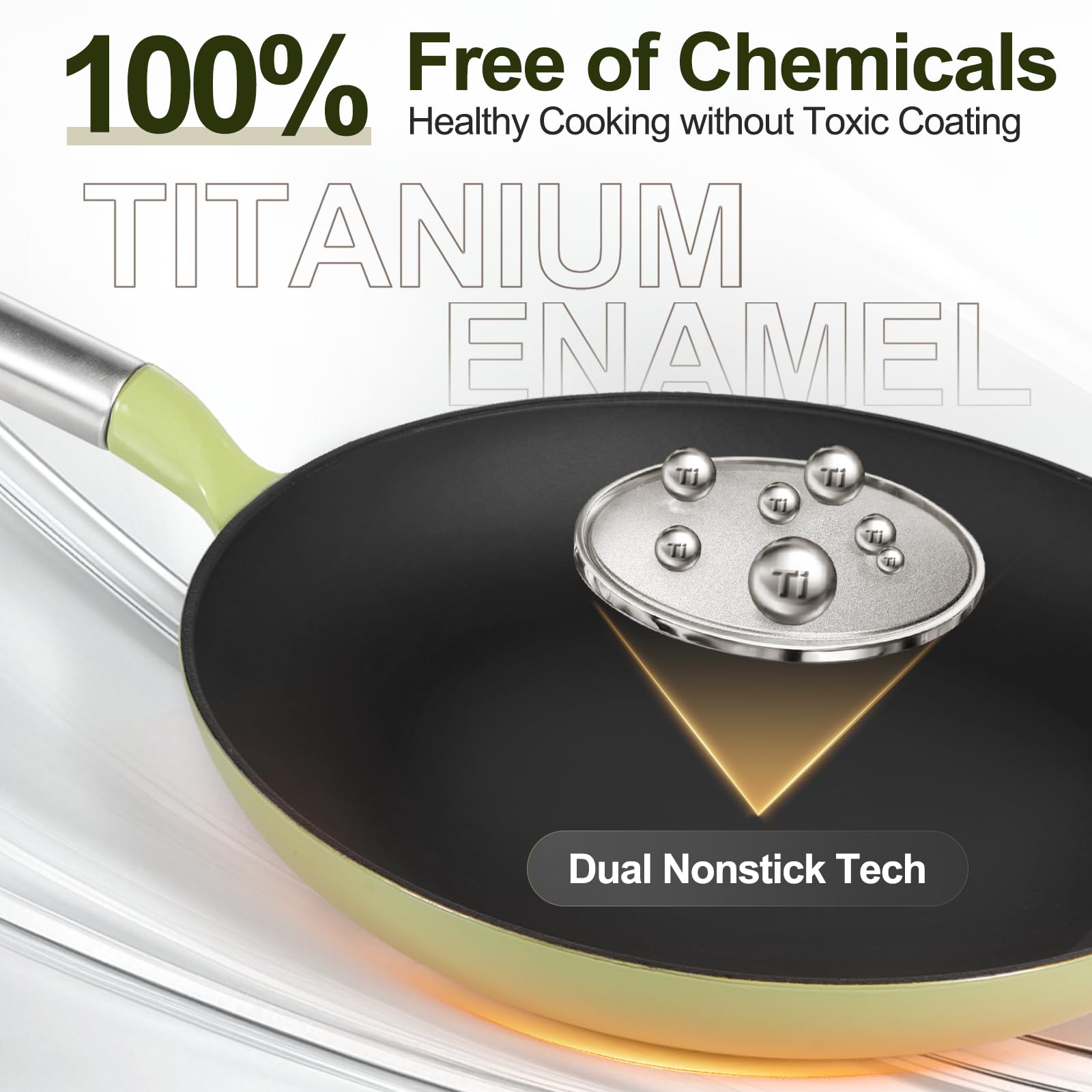 - MULTI-FUNCTIONAL & SAFE: The versatile frying pans work perfectly on all cooktops including gas, electric, induction, ceramic, oven, and even outdoor grills. The skillets set includes 8', 9.5', and 11' pans designed to meet all your family cooking needs for kitchen efficiency. The titanium enamel cast iron pans without chemical coating are completely non-toxic, PFOA/PFAS/PTFE-free for safe family cooking.