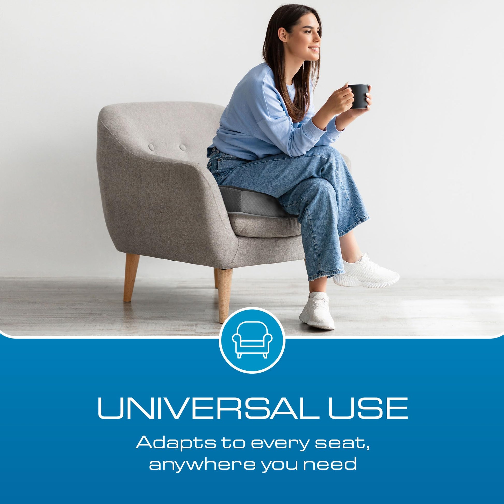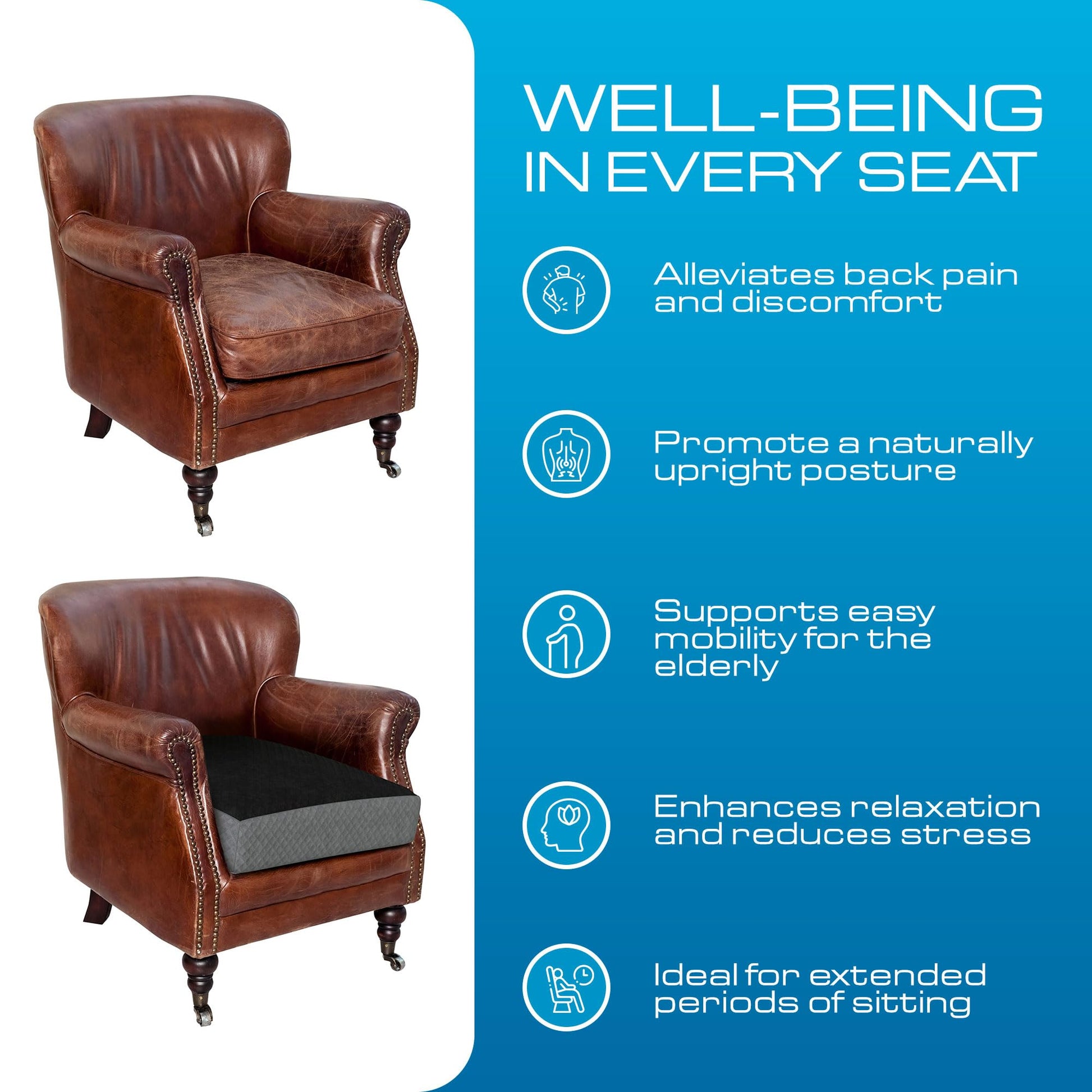 - NON SLIP BOTTOM: The bottom side of the square seat cushion has a non skid grip to ensure the cushion stays firmly in place.