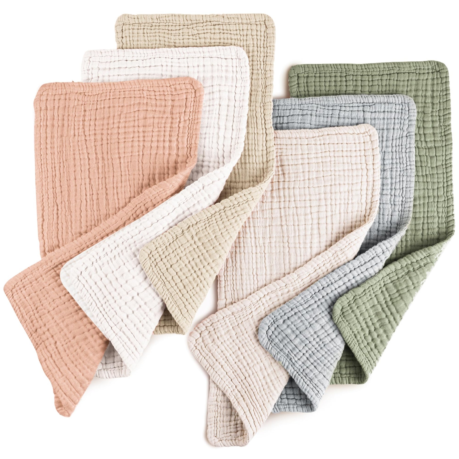 100% Cotton (Muslin) Ultra-Soft and Absorbent: These burp cloths are made from 100% muslin cotton, offering ample absorbency and a gentle touch that's kind to the skin. The soft, absorbent cotton i