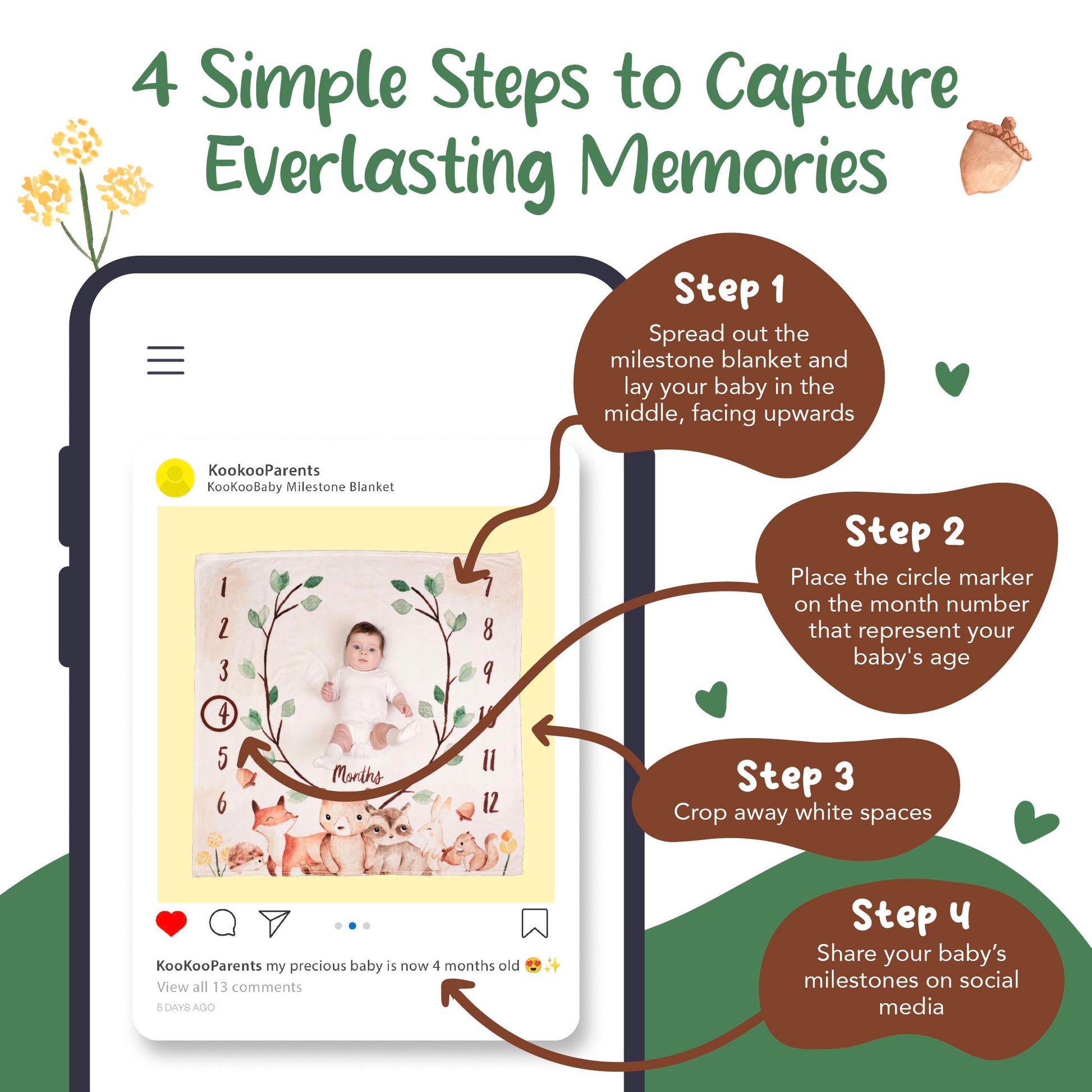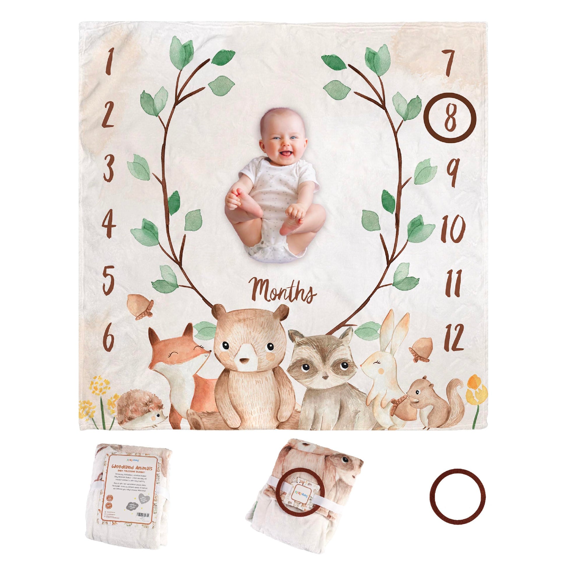 KooKooBaby Monthly Baby Milestone Blanket,47"x47" Premium Fleece Baby Monthly Milestone Blanket with Felt Marker, Baby Boy or Girl Month Age Growth Blanket - Woodland Nursery Animals