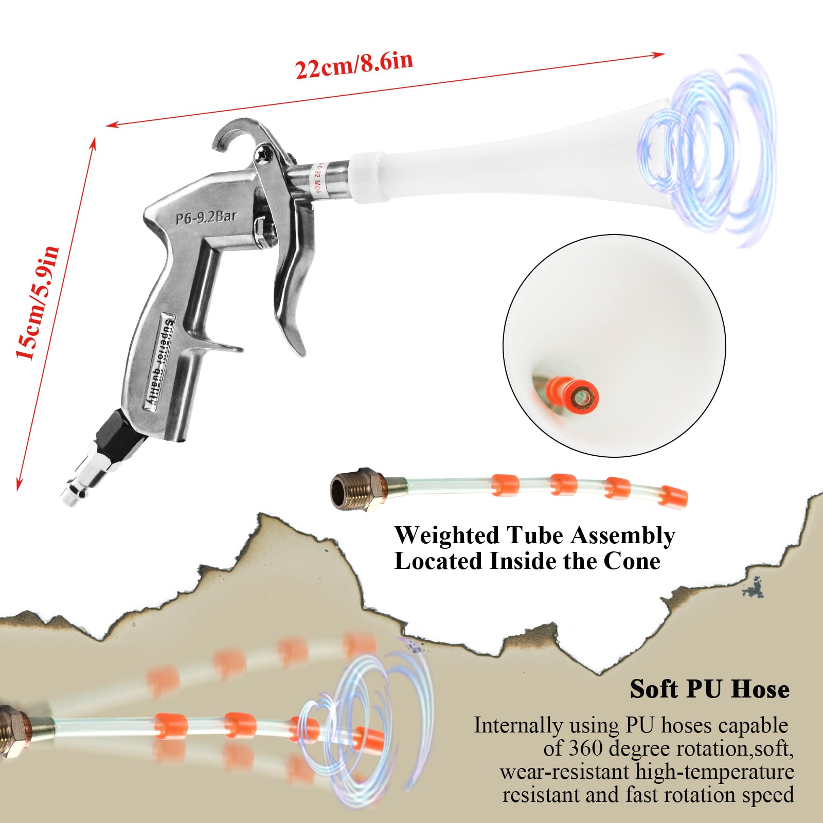 - UNIQUE BUT SMART DESIGN YOU CANNOT FIND ANYWHERE:The gun body of air gun blower the is made of high quality aluminum alloy, and the cone-shaped nozzle is made of PP material. It is durable, and can provide you with long-term cleaning services.Comes with a 360-degree high-speed swivel, enabling maximum coverage and efficiency. This design allows you to effortlessly reach all those hard-to-access areas, ensuring a thorough clean.