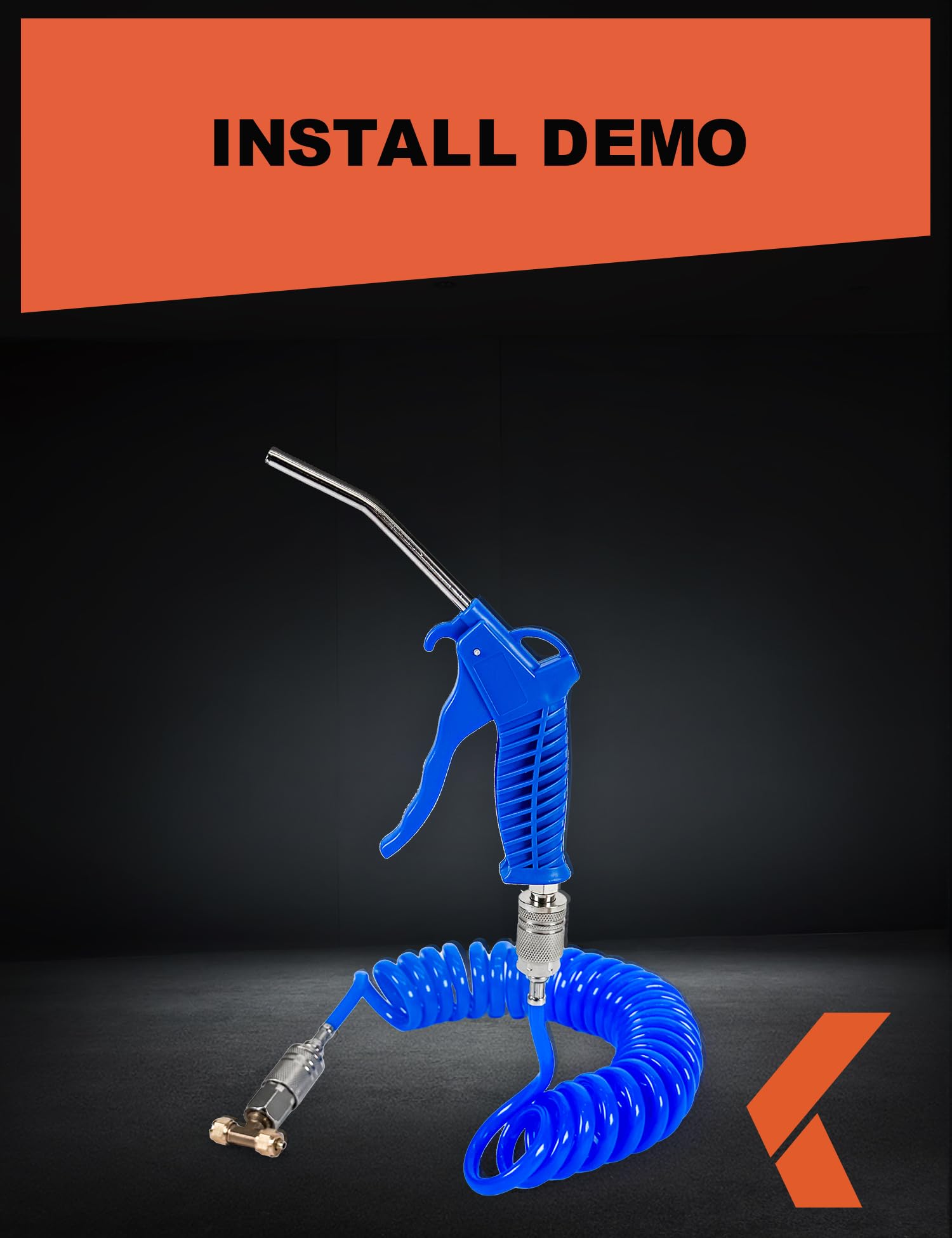 KREFINISH Air Blow Gun kit with Air Blow Gun 16ft(5 Meter) Long PU Air Hose Heavy Duty Cleaning with Long Nozzle Air Duster Blow Gun Kit for Air Compressor