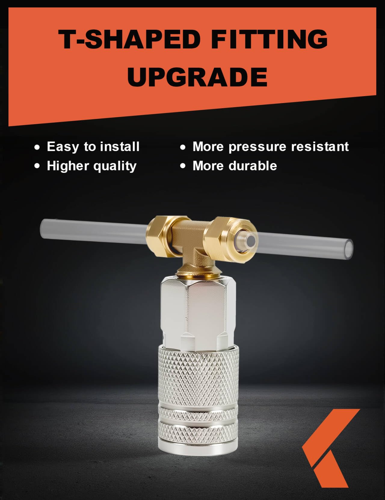 - 【Advanced Air Compressor Tool Kit】Swivel solid brass and fittings reduce hose twist and bend restrictors reduce kinking and help to increase the life of the hose.Additional T-type adapters with bronze ball automatic shut-off valve to expand usage scenarios.You can connect to compressor direct or work with T shaped adapter.