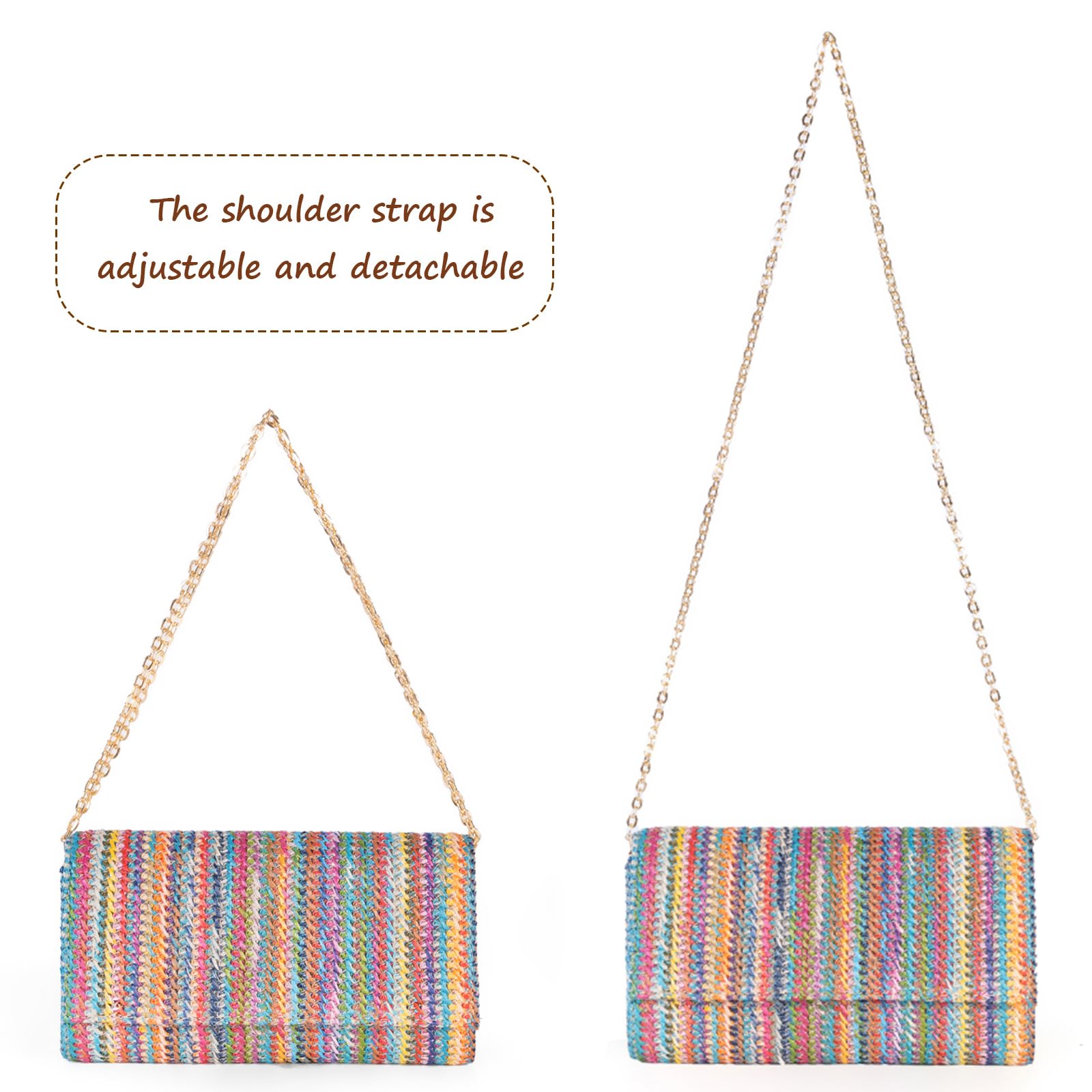 - Straw Woven Element: This envelope clutch purse is made of high-quality straw material. Soft, lightweight, and very suitable for summer or spring. There is also a chain shoulder strap, and you can change different wearing ways by changing the strap length. The strap is also detachable.