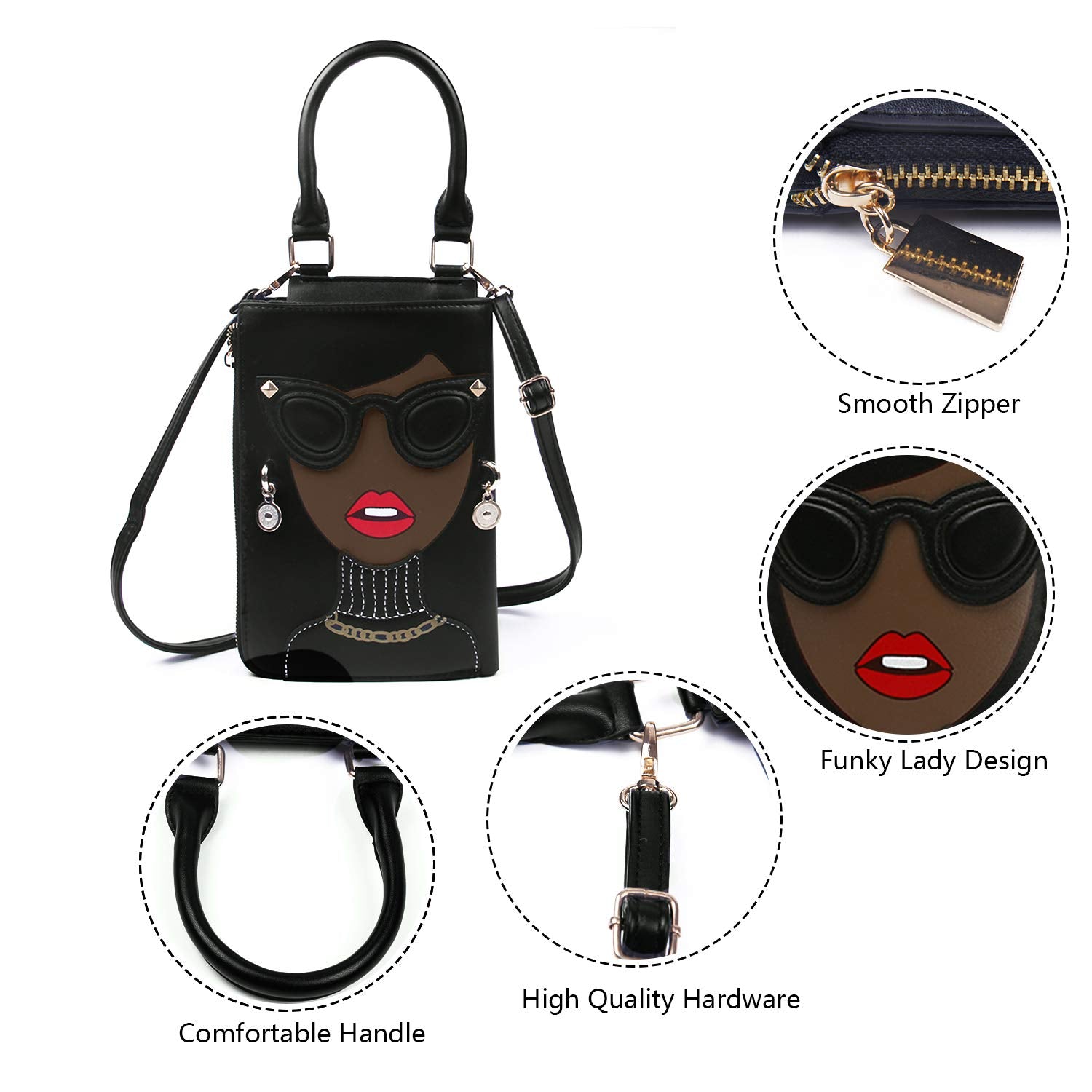 KUANG! Women Novelty Lady Face Shoulder Bags Funky PU Leather Top Handle Satchel Handbags Clutch Purse for Women