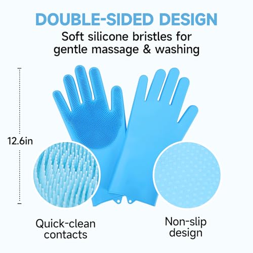 - 100% Silicone and Heat Resistant:The dog washing gloves are made of high quality silicone, non-toxic and highly resilient. Heat resistant up to 450°F, so the dog cat bath gloves can be sterilized with boiling water when bathing pet and you don't have to worry about getting burned. With anti-slip bump: The internal bumps are non-slip, which can make the dog shower gloves fit your hand tightly and not easy to fall off. No need to adjust the gloves frequently when bathing