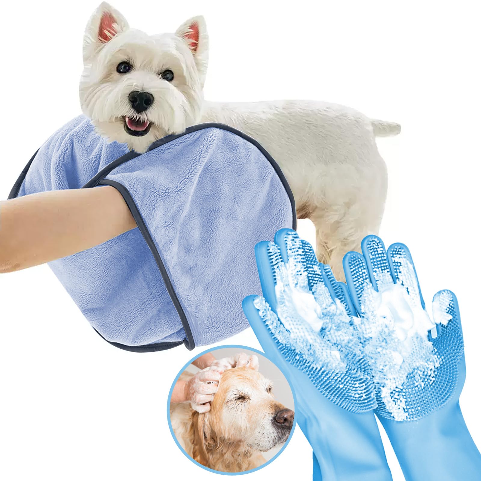 - Pet Bathing 2 Piece Kit:KUEIOX specially matches the dog cat bath washing gloves(12.6”) and quick-drying towel for your beloved pets.The 2-piece set easily handles your pet's showering process.Multi-purpose can be used for all kinds of furry pets, such as cats, dogs,rabbits and horse