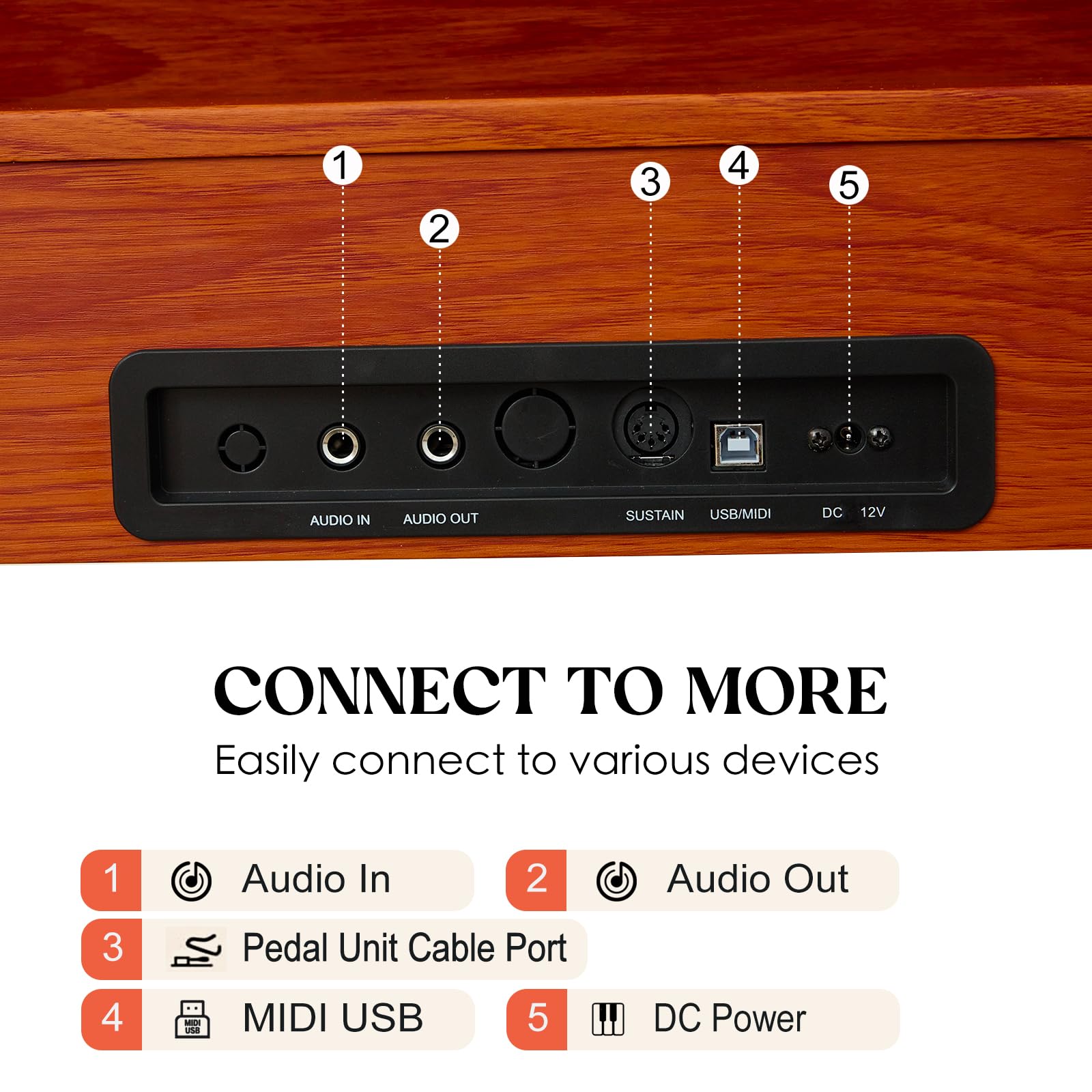 - 【Multiple Connectivity Options】With USB/MIDI connectivity, our keyboard piano can pair with your phone or iPad and then connect to applications as well as connect to your PC or tablet directly for accompaniment .The MIDI interface unlocks your creative potential, and the USB support allows for MP3 playback