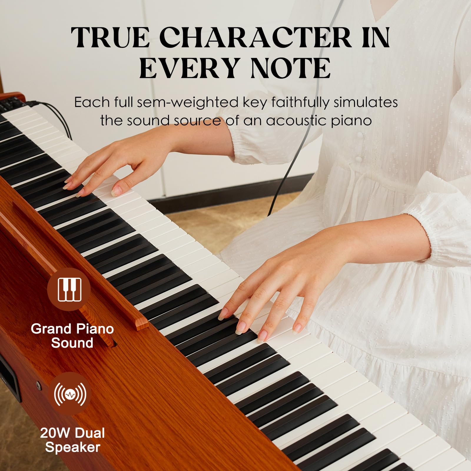 - 【88-key Semi-Weighted Keyboard】The keyboard piano is an 88-key Full-Size, Semi-Weighted Keys 。piano keyboard that is perfect for players that are still developing their touch. It’s a good electronic piano to replace the grand piano for teaching or learning
