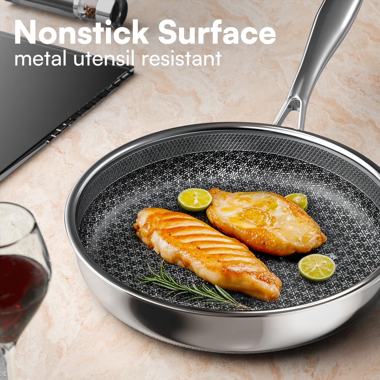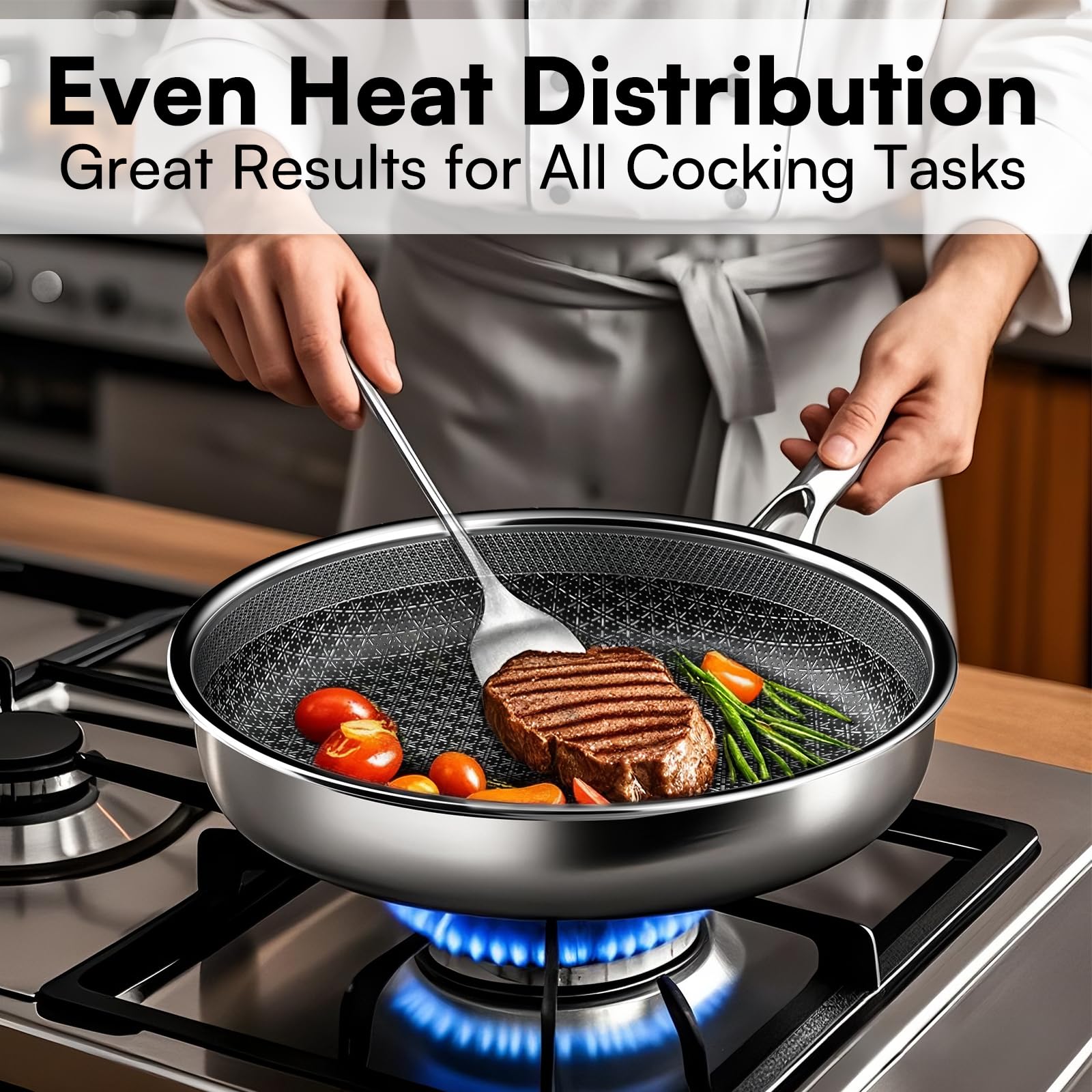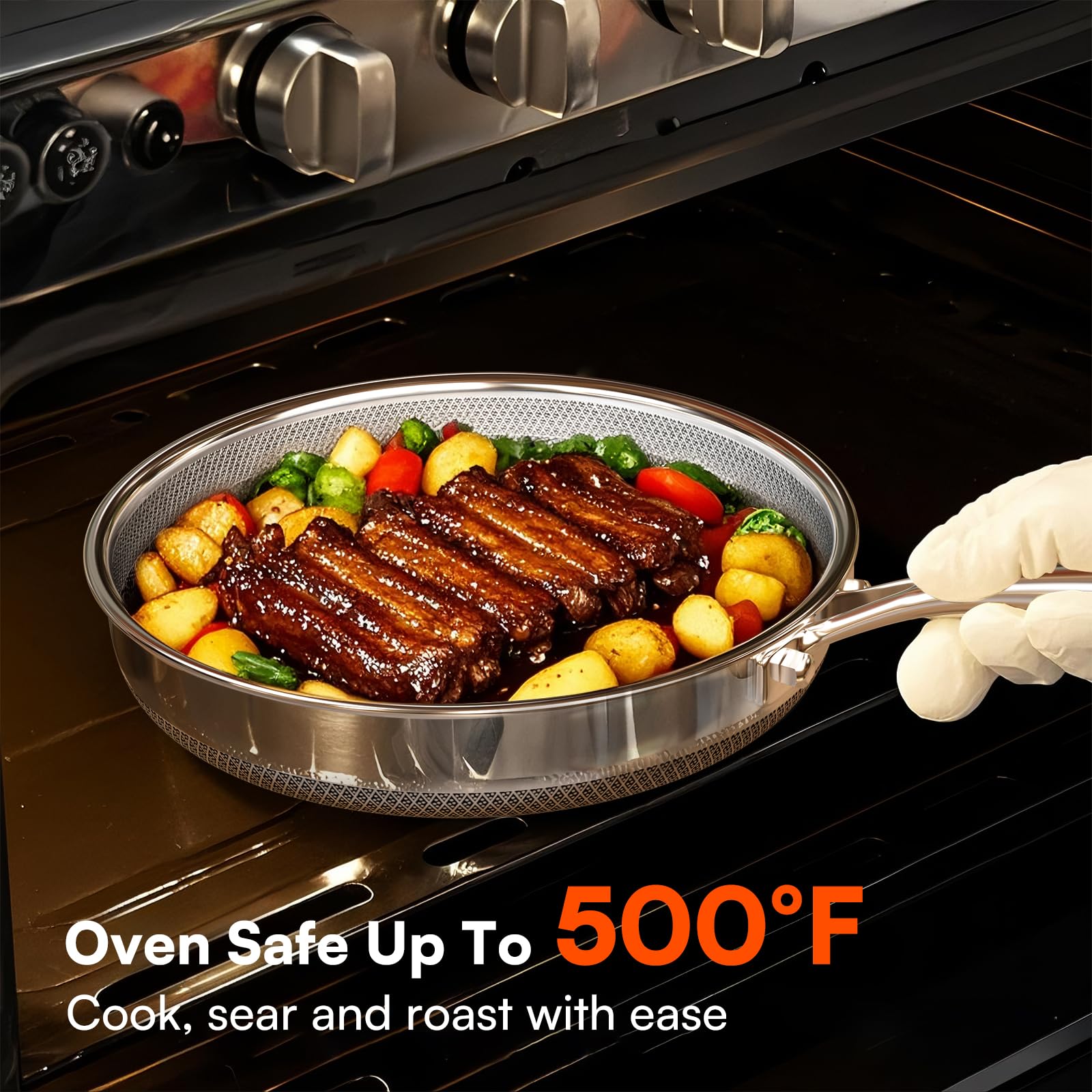 - Premium Stainless Steel Construction – This durable stainless steel cookware set features tri-ply cladding for fast, even heating and oven-safe,base reduces cooking time and ensures perfect results for searing, sautéing, or slow-cooking.