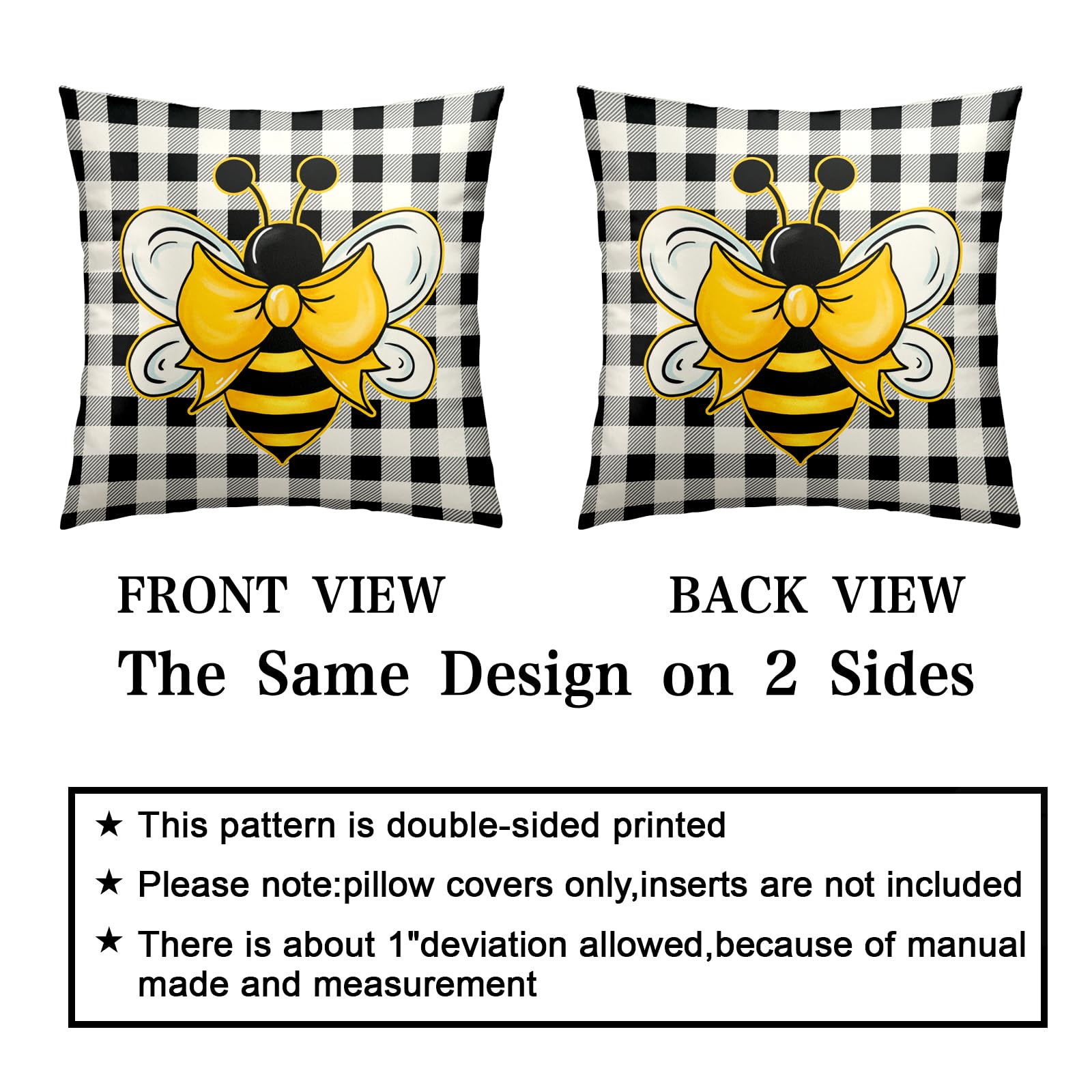 Kwlegh Yellow Bumble Bee Pillow Covers 18x18 Set of 2 Black White Buffalo Plaid Pillow Covers Summer Spring Themed Decorative Cushion Cases Home Decor for Couch Bed Holiday