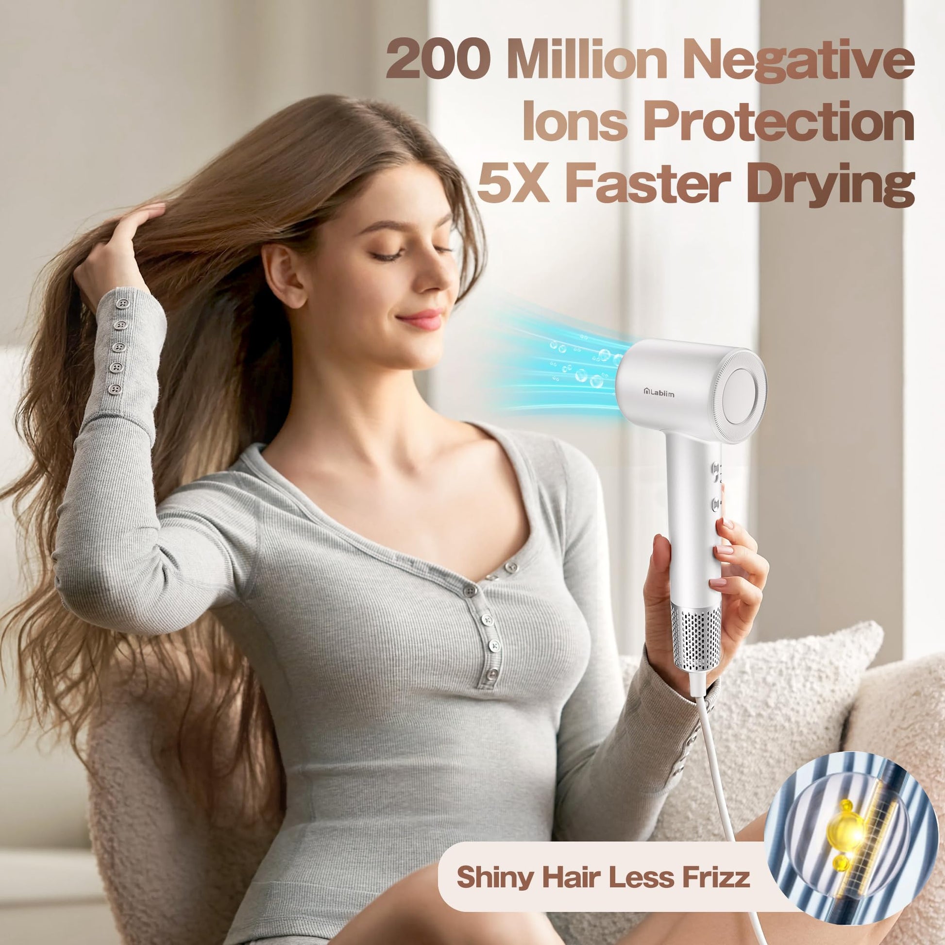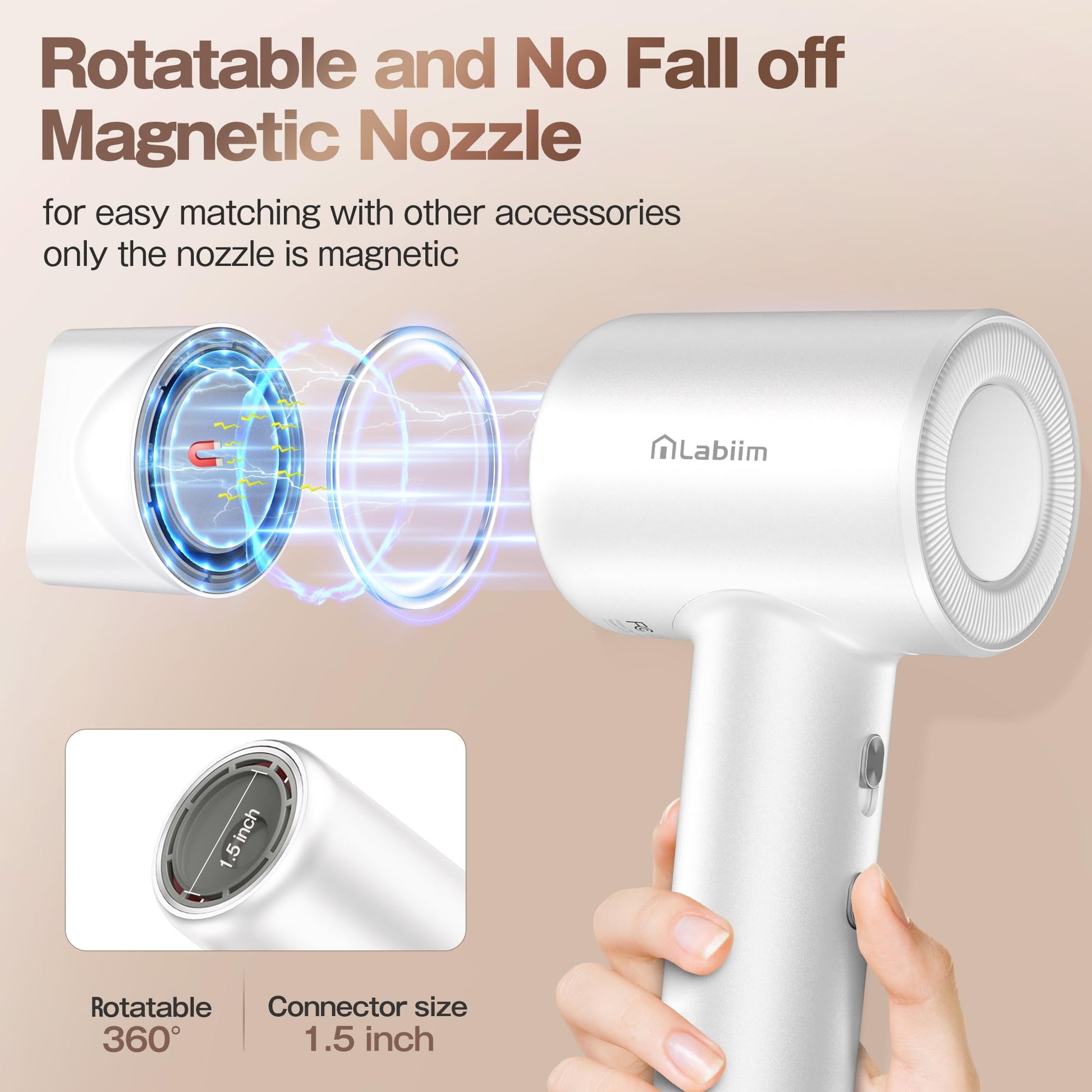 - 【Ultra-Fast Drying】Labiim magnetic nozzle hair dryer is equipped with a 110,000 RPM high-speed brushless motor, providing a strong wind speed of up to 25 m/s. It only takes 2-5 minutes to dry hair, which is 5x faster than traditional hair blow dryer, makes your hair care routine efficient and enjoyable.