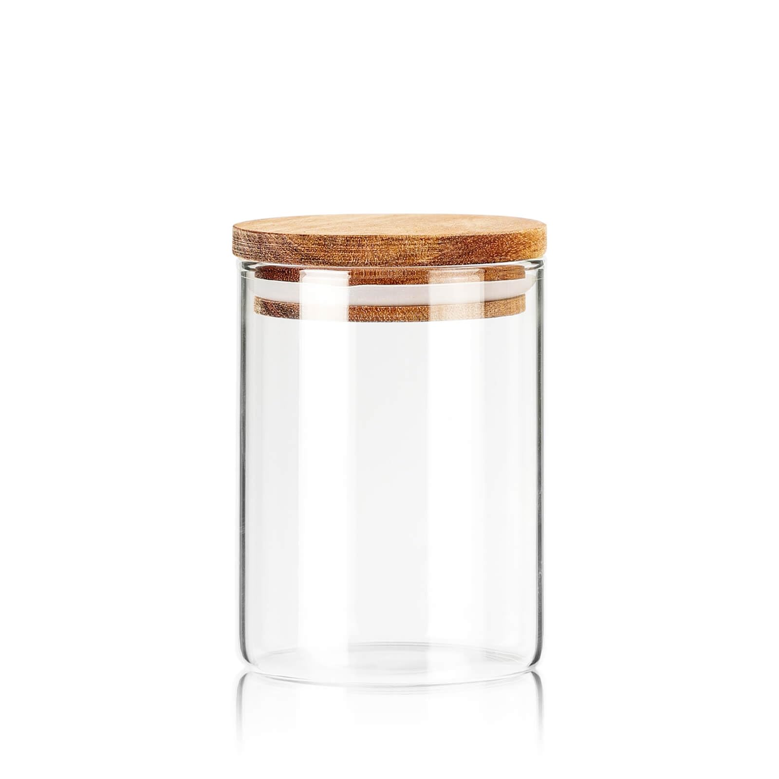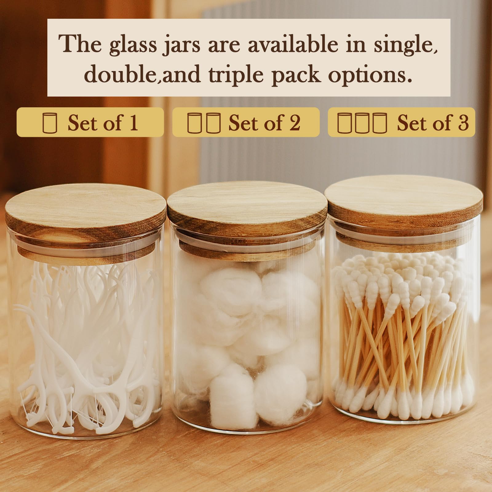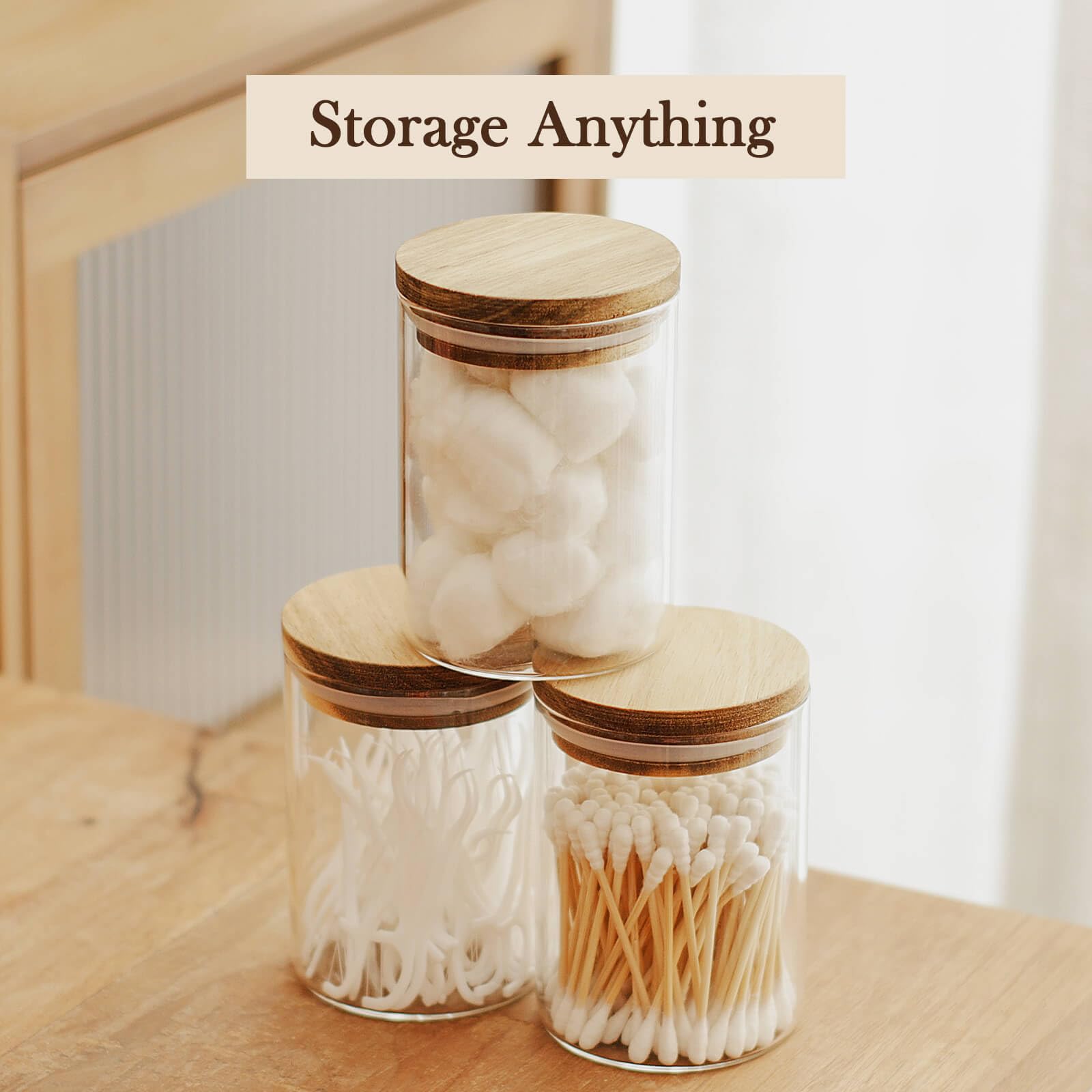 Labina Qtip Holder Glass Bathroom Organizer Storage Canisters with Wooden Lid, 10oz Jar for Cotton Balls Swabs Dispenser and Bathroom Essentials