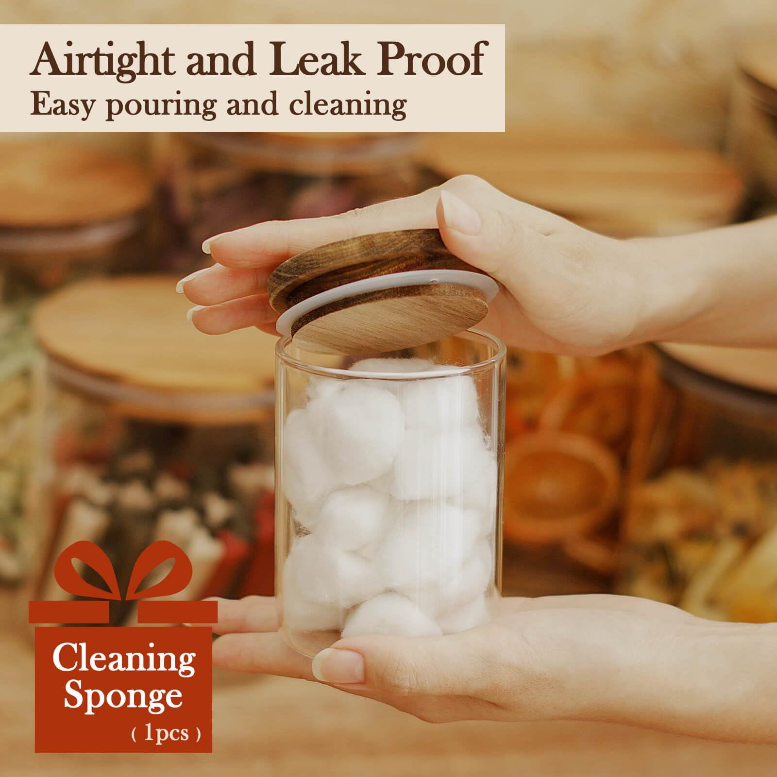 - Size and capacity: The size of the glass jar is 7.5 inches (φ) * 11 inches (H). The capacity is 0.31 quarts (300ml/10 Oz). The carefully designed size not only ensures sufficient capacity to meet the storage needs of bathroom necessities such as cotton swabs and cotton balls, but also cleverly saves space, so that every inch of space can be used to the maximum effect.