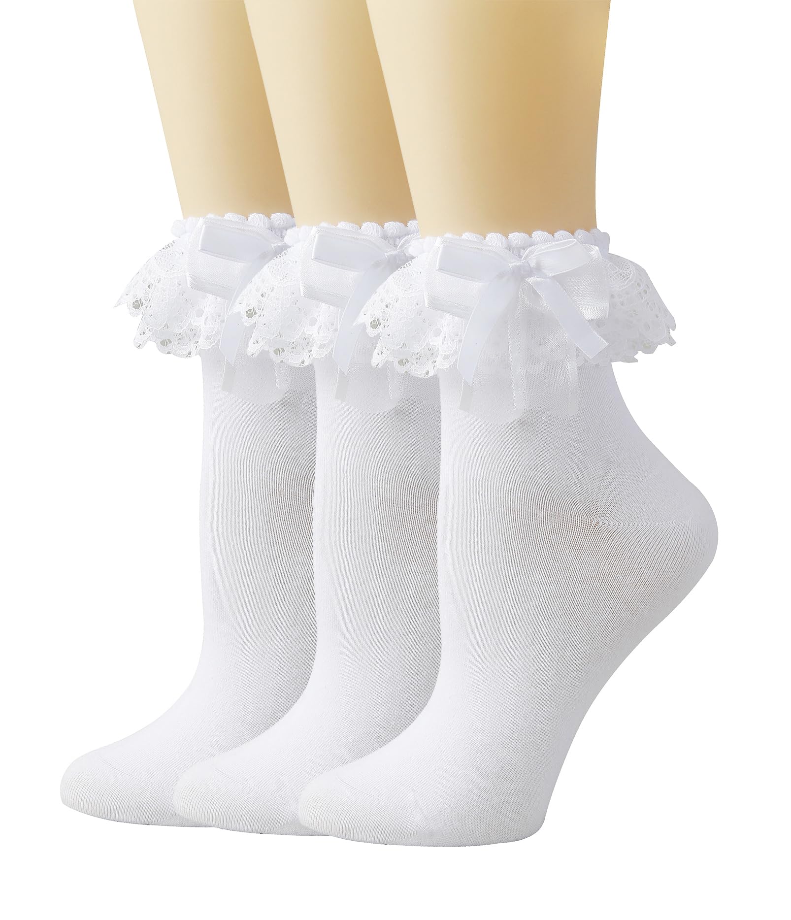 Lace Ruffle Socks for Women, Frilly Ankle Socks with Bow