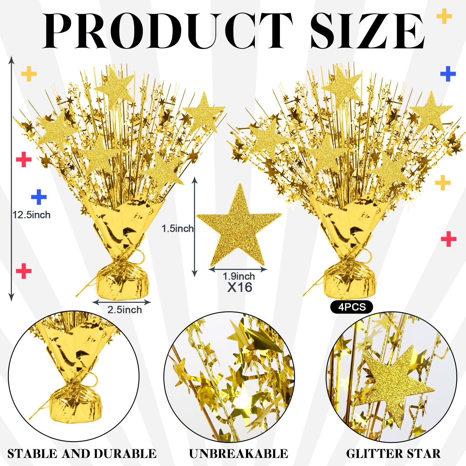 - Exquisite design. These gold centerpiece for table decorations made of durable and shiny gold foil and stable base, with 16 gold stars for centerpieces, easy for you to place on any flat surface.