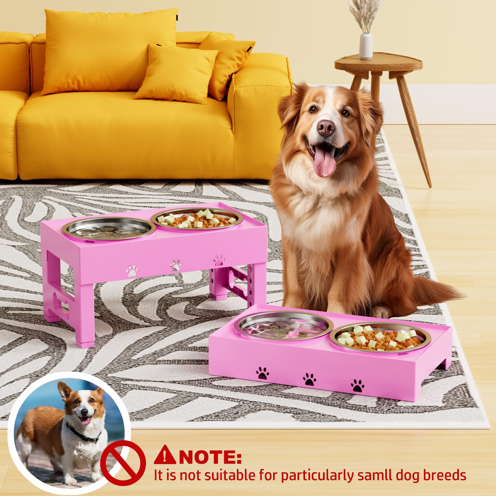 - đžăAnti-Slip, Silent Designă:Equipped with noise-reducing rubber edges and non-slip foot pads, this stand stays firmly in place even during energetic eating sessions. Enjoy quiet, mess-free meals without sliding bowls or floor scratches caused by traditional feeders!