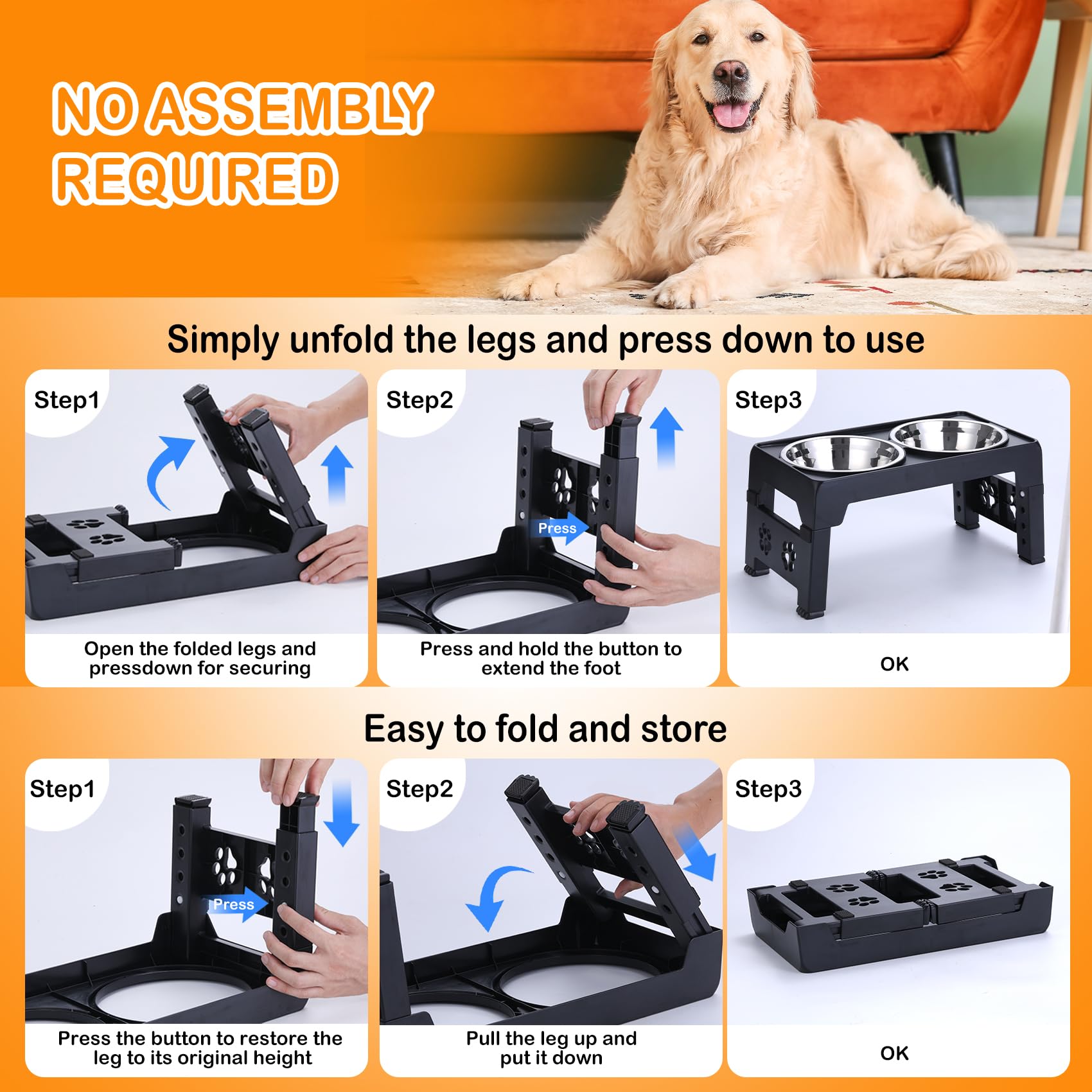 LALOBLUE Elevated Dog Bowls, Raised Dog Bowl with 2 Stainless Steel Dog Food Bowls, Dog Bowls Stand Adjusts to 5 Heights 2.95", 8.46", 9.65", 10.82", 12.01" for Small Medium Large Dogs Cats Pets,Black