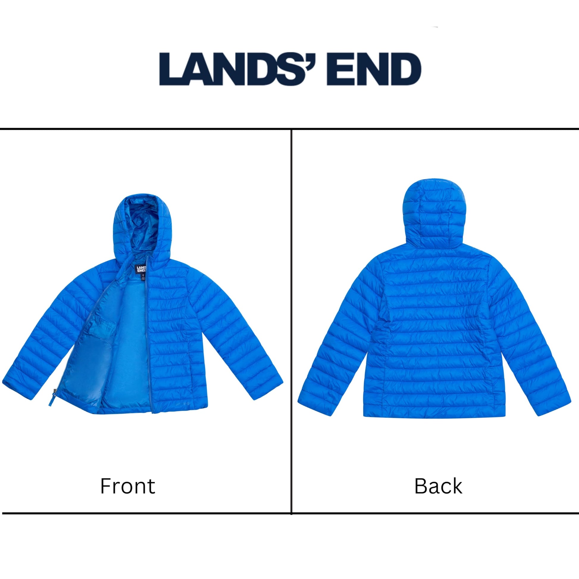 Lands' End Kids Full Zip Lightweight Thermoplume Hooded Jacket, Nautical Blue, Medium