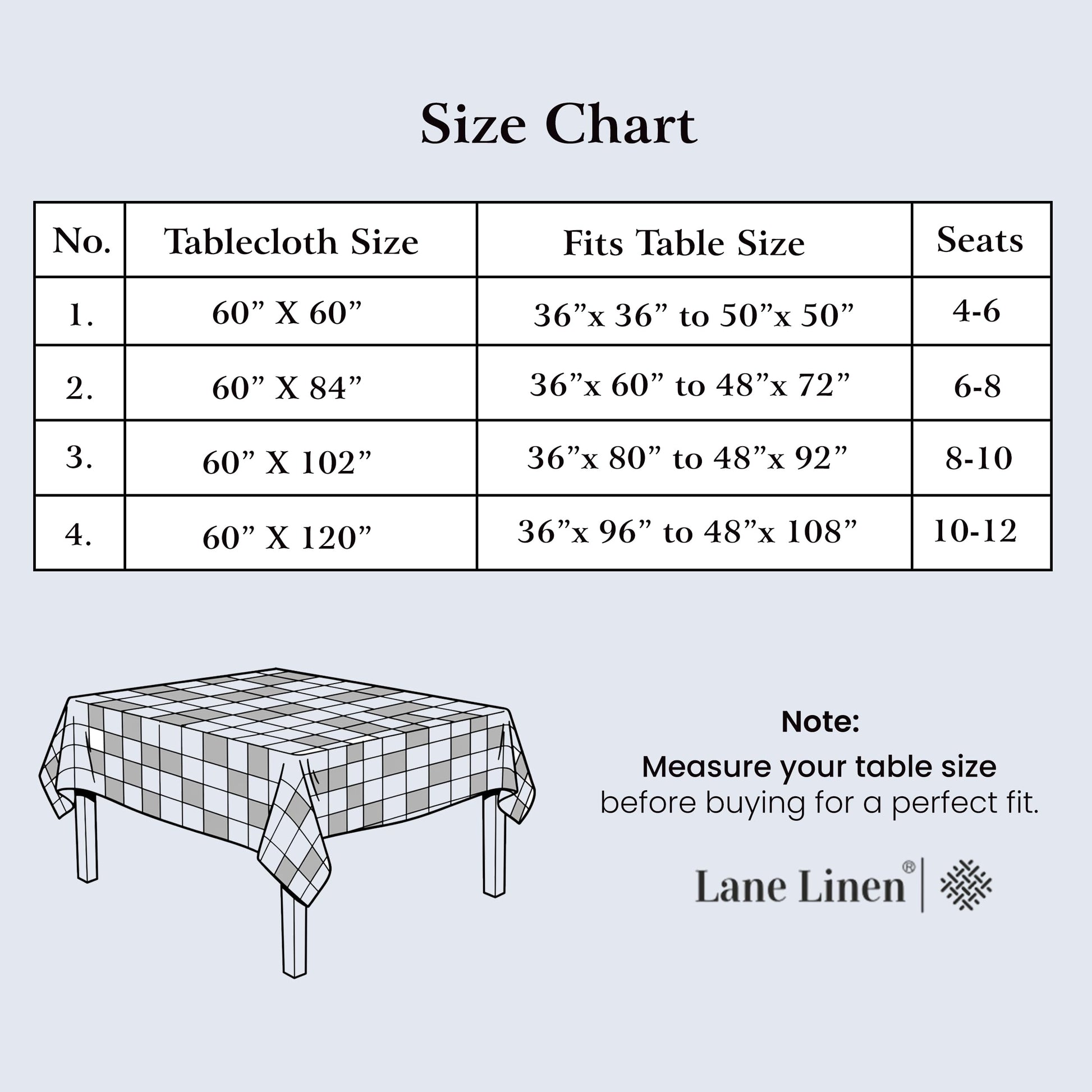 Details: Elevate your dining experience with the Lane Linen Checkered Tablecloth—a perfect blend of style, durability, and functionality. This rectangle tablecloth is designed for versatility, making it ideal for outdoor picnics, kitchen settings, or festive holiday dinners. Made from premium fabric, it is stain-resistant, spill-proof, and washable, ensuring long-lasting beauty and convenience. The classic grey gingham pattern adds a timeless charm to any table setting, bringing a cozy, rustic feel to your gatherings. Complementing the tablecloth is the Lane Linen Plaid Table Runner, crafted from a blend of 70% cotton and 30% polyester. This checked and plaid runner is perfect for seasonal décor, whether you’re celebrating fall, Halloween, or Thanksgiving. Its farmhouse-inspired design adds warmth and character to your tablescape. Complete the look with the Lane Linen Plaid Placemats. This set of 4 and 6 decorative placemats (13' x 19') is avaiable in various colors is made from high-quality cotton, perfect for protecting your table while enhancing the aesthetic of your kitchen or dining area.