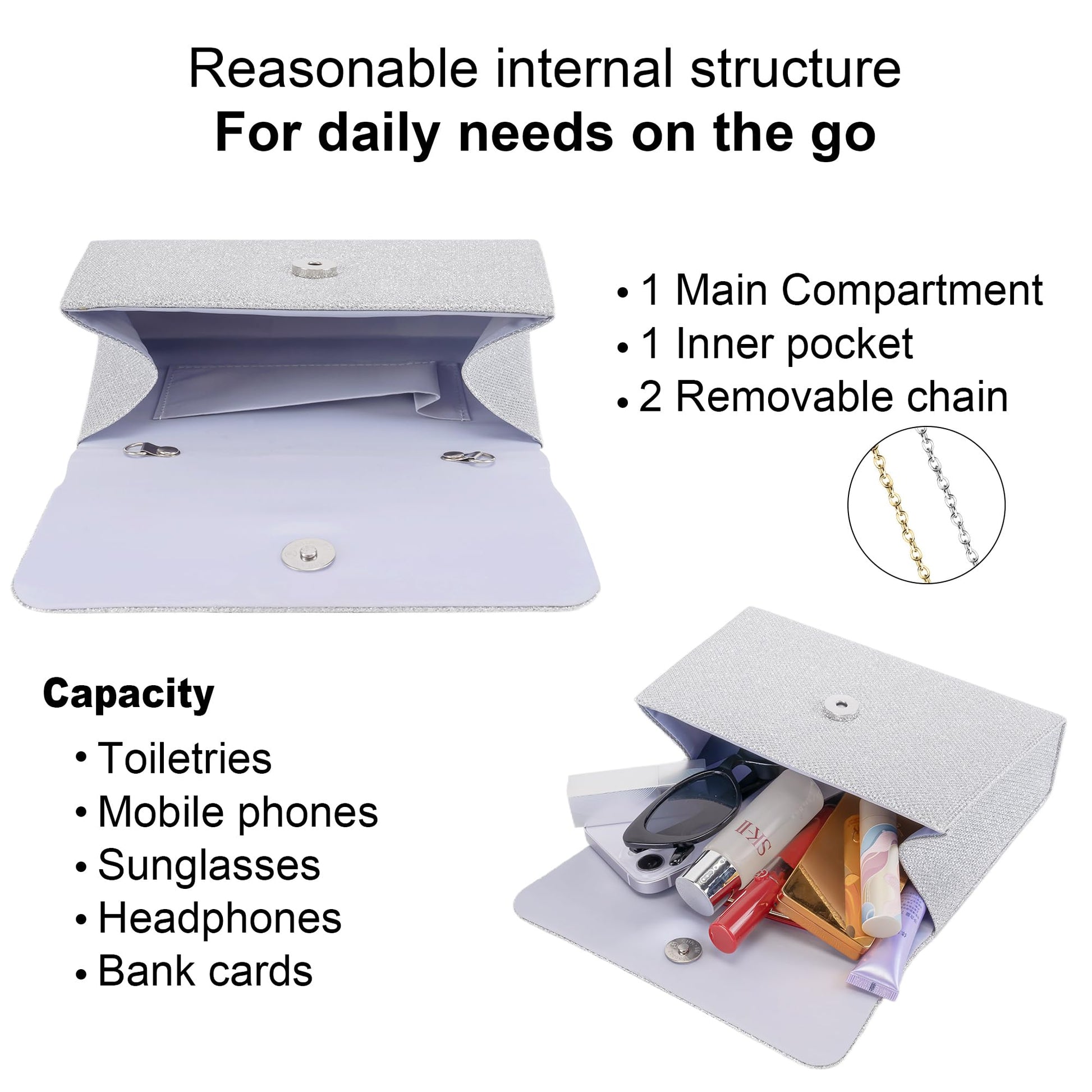 - Practical Size: Measuring 7.9'L x 2.2'W x 5.3'H, our evening bag is lightweight and spacious enough to fit all your essentials, including your iPhone, lipstick, tissue, wallet, compact mirror, and more