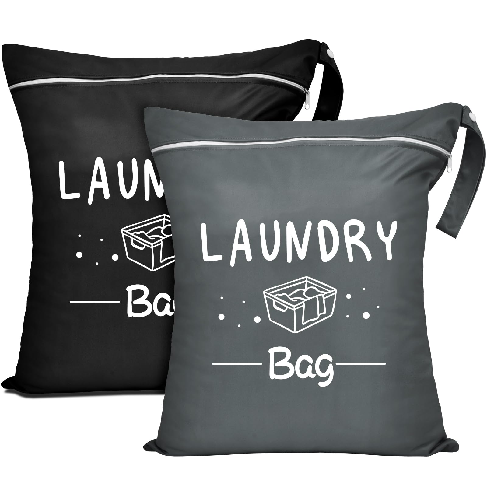 Large Travel Laundry Bags with Zipper, Waterproof Wet Dry Diaper Bags for Dirty Clothes Suitcase, Swimwear, Gym Clothes, Washable Camp Laundry Bag Sleepaway Suitable for Fitness (Black+Grey)