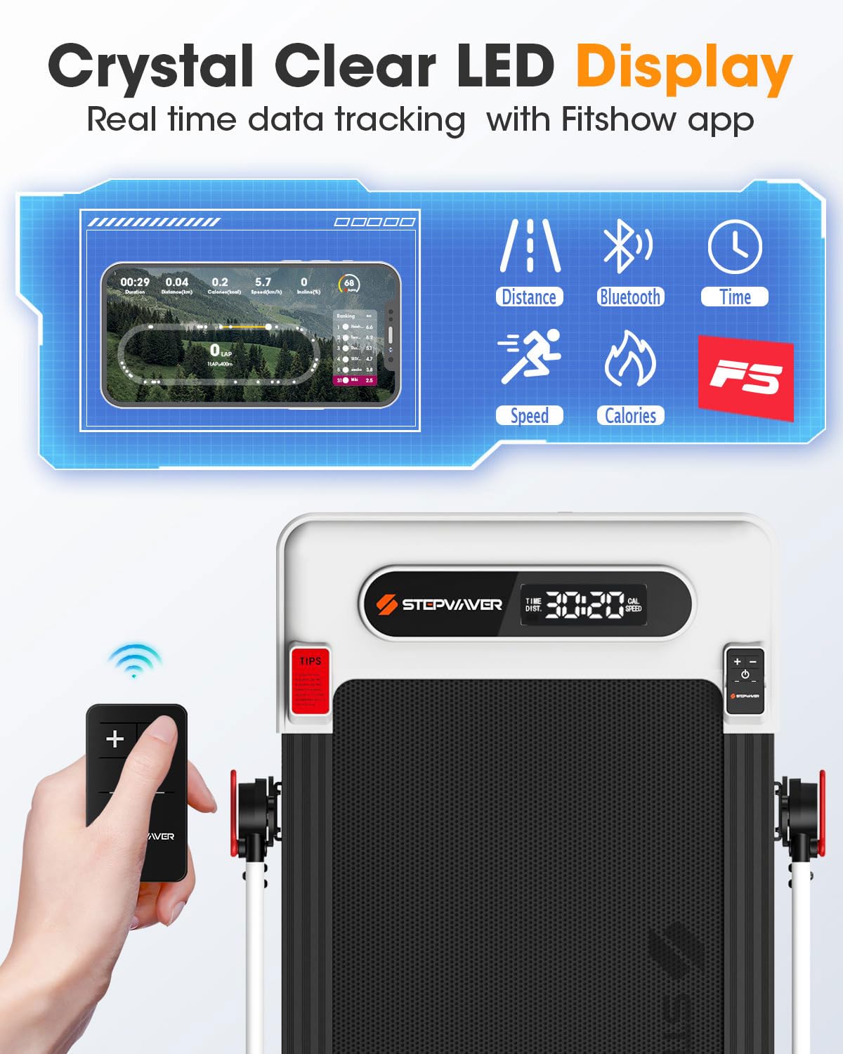 - 【LED Screen & Remote & Console Control】The folding treadmill with LED display shows time, speed, distance and calories, grasp exercise status in real time, and make exercise data clear at a glance. The walking desk treadmill experience gets a boost with the console and remote control, making speed adjustments a breeze