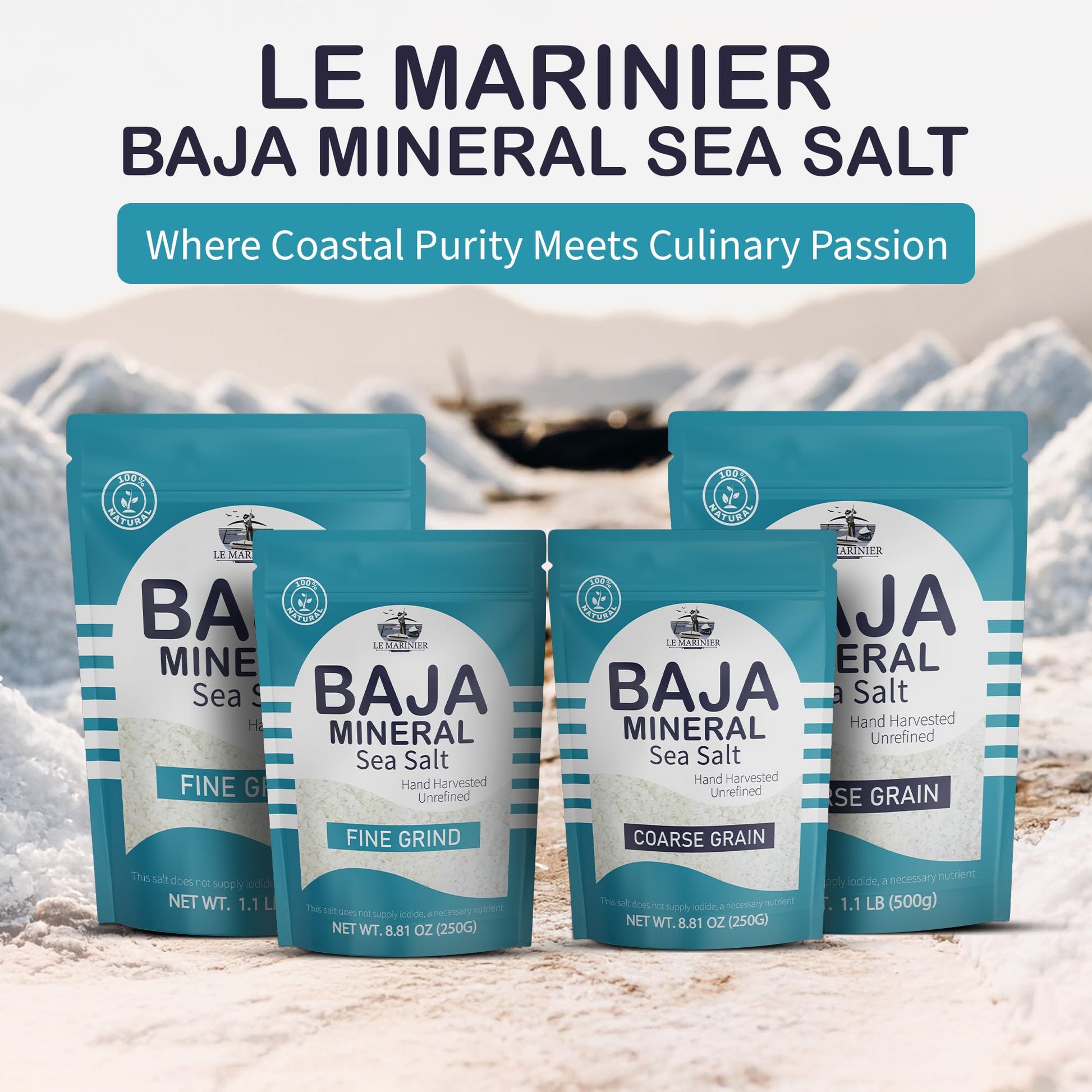 Le Marinier Baja Mineral Sea Salt Coarse Grain, 1.1lb - 18oz | 100% Natural and Unrefined | Authentic Baja Sea Salt, Mineral Rich, Hand Harvested (1.1lb Coarse Grain Baja Salt)