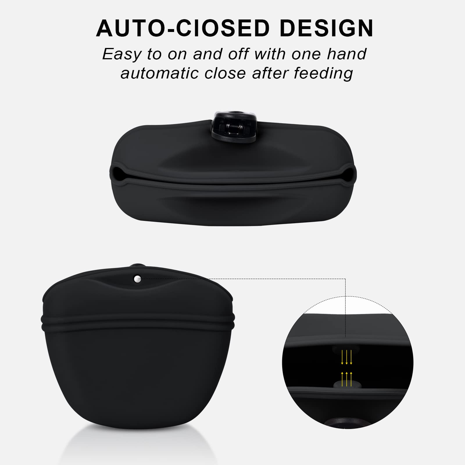 - 🐕Silicone Dog Treat Pouch🐕 - The silicone dog treat pouch is made of food grade silicone,it can contact dry and wet food directly,safe and healthy. It’s easy to on and off with one hand, automatic close after feeding.With upgrated clip,It is easy to carry,not easy to fall off.Dish washer safe and easy to clean,The large opening design and soft silicone material make the pet pouch easy to reverse to clean the inner easily and thoroughly.