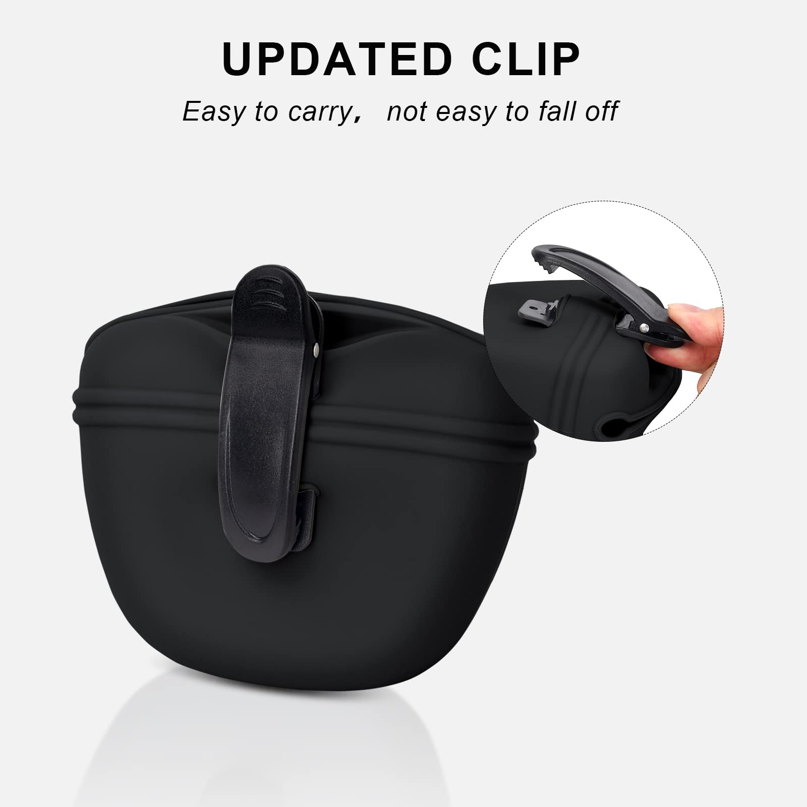 - 🐕Easy To Use🐕 - The silicone dog treat pouch is eay to use.The design of magnetic buckle closing for easy to on and off with one hand, automatic close after feeding.With the upgrated clip,you can clip to pockets、belt loops or package,it's convient to train or walk pet outside.The clicker training for dogs is easy to use, simple push button with distinct clicking sound, Train your pet just by simply pressing the clicker and command.