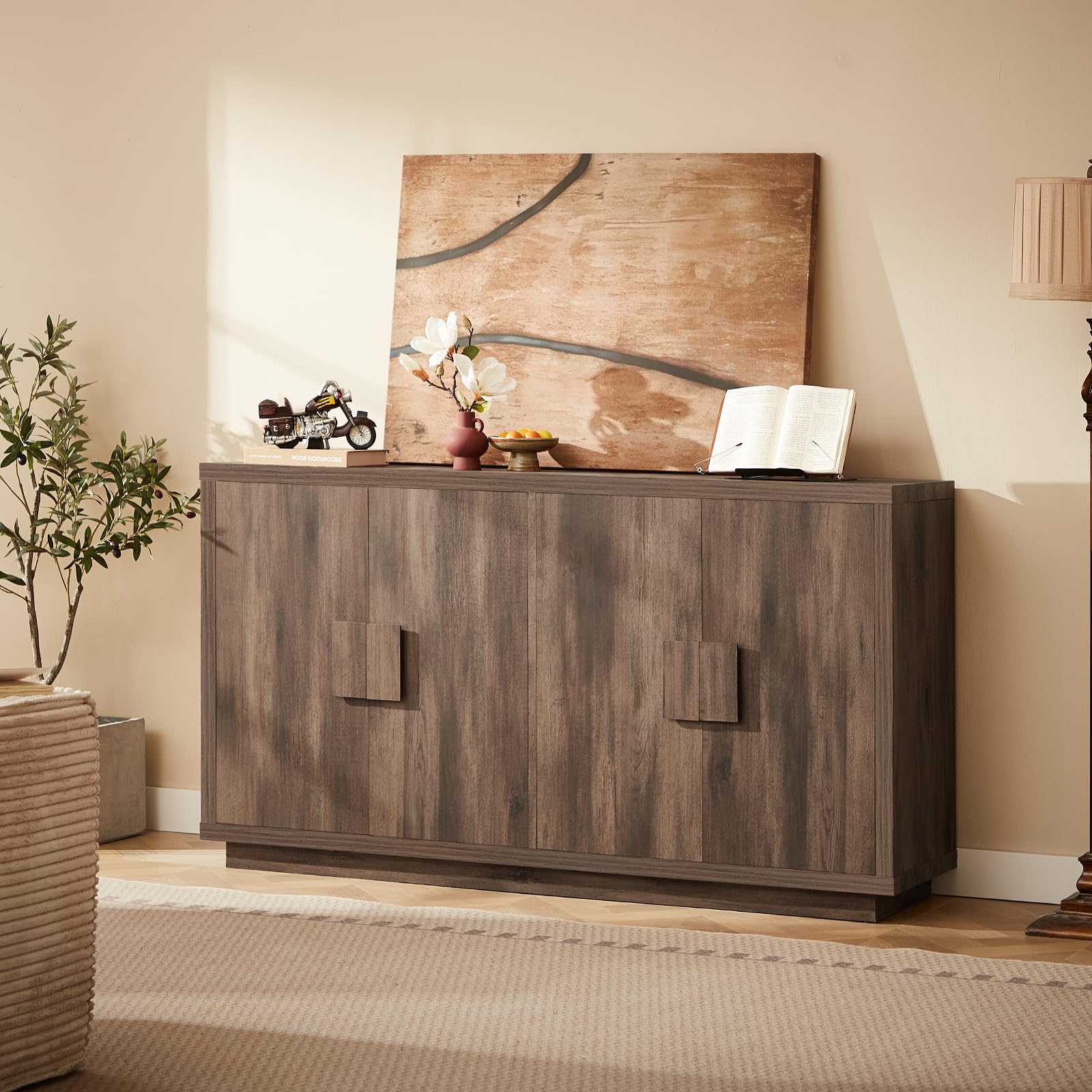 - Versatile Functional Design - Transition effortlessly between roles, transform the sideboard buffet cabinet into a media console, TV stand, or a chic credenza. Cleverly placed in the living room, dining room and hallway, it can be effortlessly adapted to your lifestyle, blending practicality with style