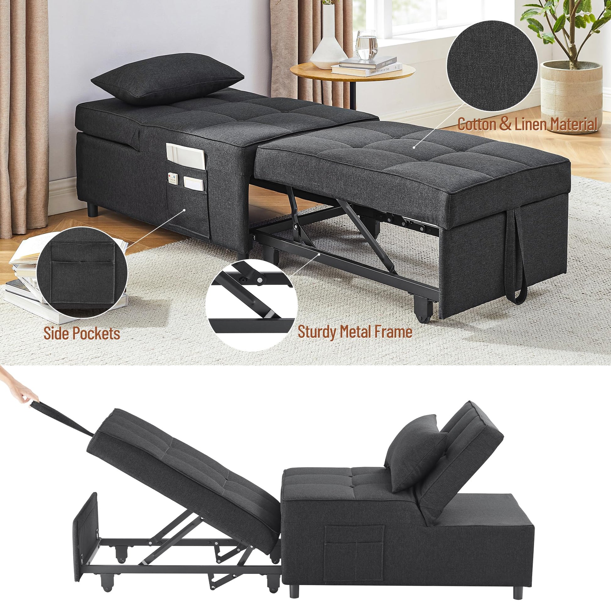 LegacyAmerhome Sleeper Chair, 4-in-1 Multi-Functional Sofa Bed Chair, Single Recliner with Pillow Side Pockets and 5 Levels of Adjustable Backrest, for Living Room Bedroom (Dark Gray)