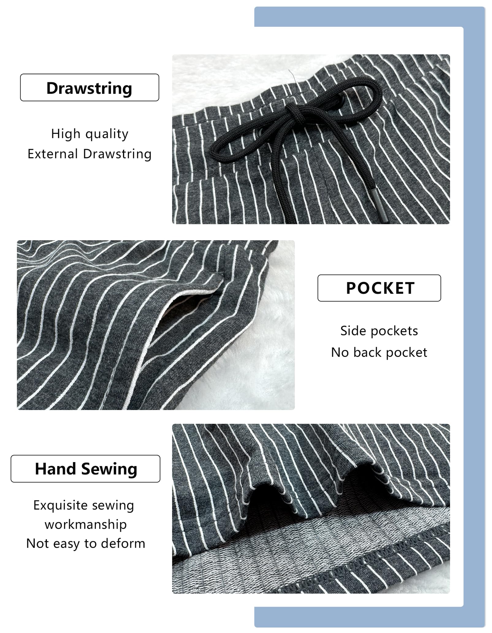 Lehmanlin Men's Sports Fitness Shorts, Cotton 5 Inch Inseam Shorts, Striped Casual Athletic Jogger Short (Stripe Dark Gray-L)