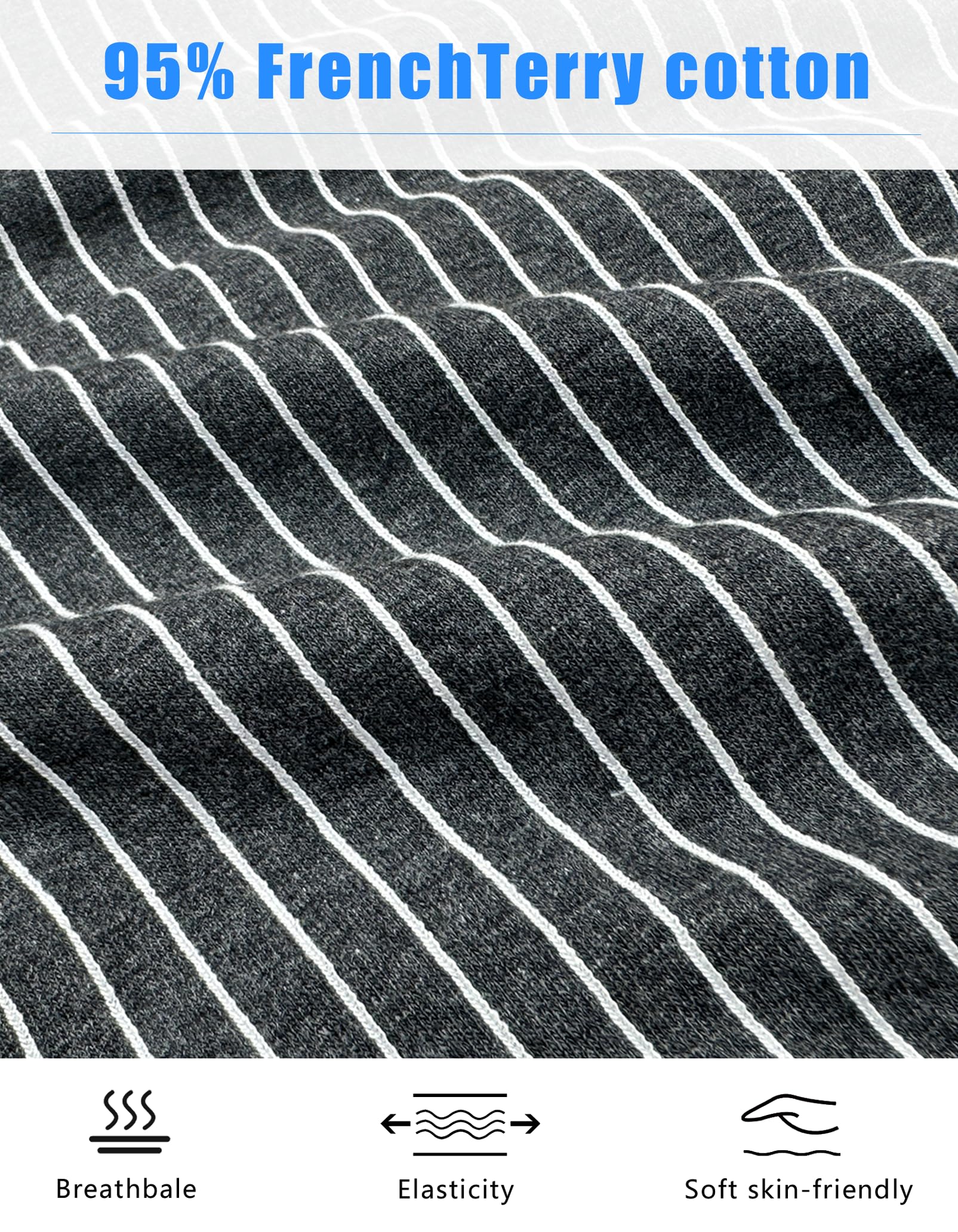 - Fabric:---French terry cotton,four-way stretch,moisture wicking,soft and comfortable fabric.pretreated at high temperature,do not shrink due to washing.