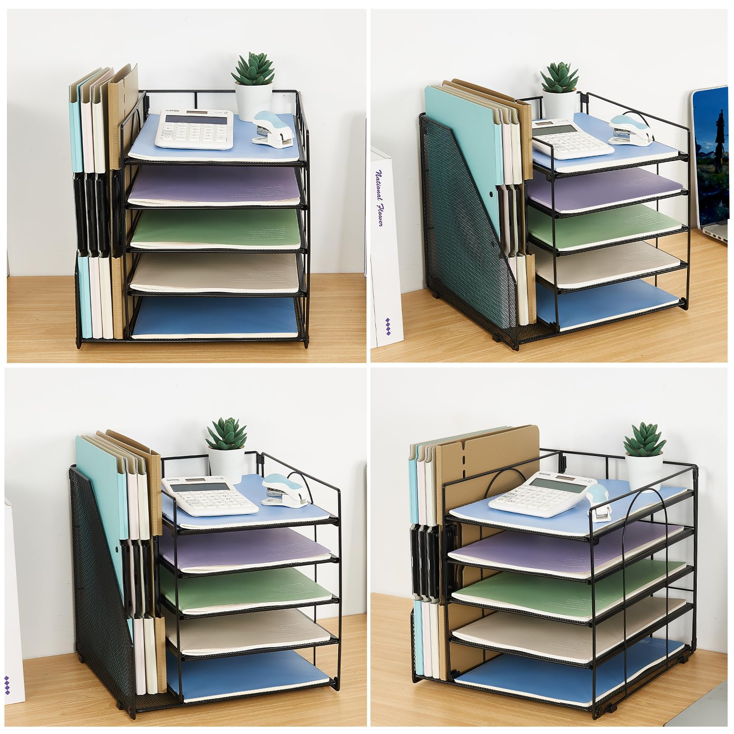 - ✅【Efficient utilization of desktop space】The vertical spatial structure design can accommodate more items, save desktop space, and facilitate office work. This file organizer is perfect for storing your files, books, letters, A4 paper, and other desktop accessories.